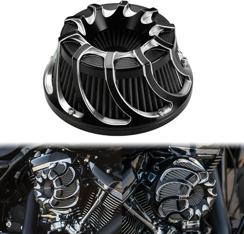 【Designs】:Inverted Series Forged billet Aluminum CNC Cut Air Cleaner Breather Intake Filters Kits Fit for Harley Motorcycles , The Unique Design air filter housings feature built-in velocity stacks that scream performance and enhance looks.