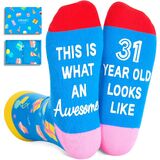 GIFTS FOR 40 YEAR OLDS: Celebrate the milestone of a decade with our "THIS IS WHAT AN AWESOME 40 YEAR OLD LOOKS LIKE" socks, an ideal gift for your 40-year-old. This practical yet stylish present is perfect for making their special day unforgettable. Our unique, premium-quality socks are not just a gift, but a memorable keepsake.