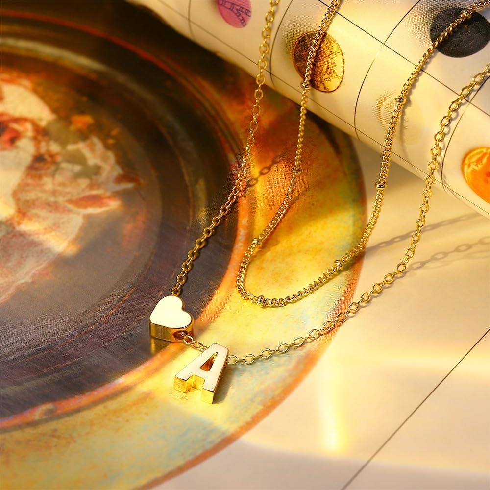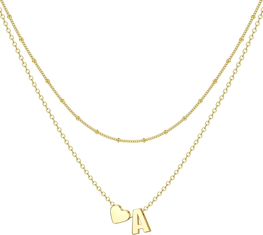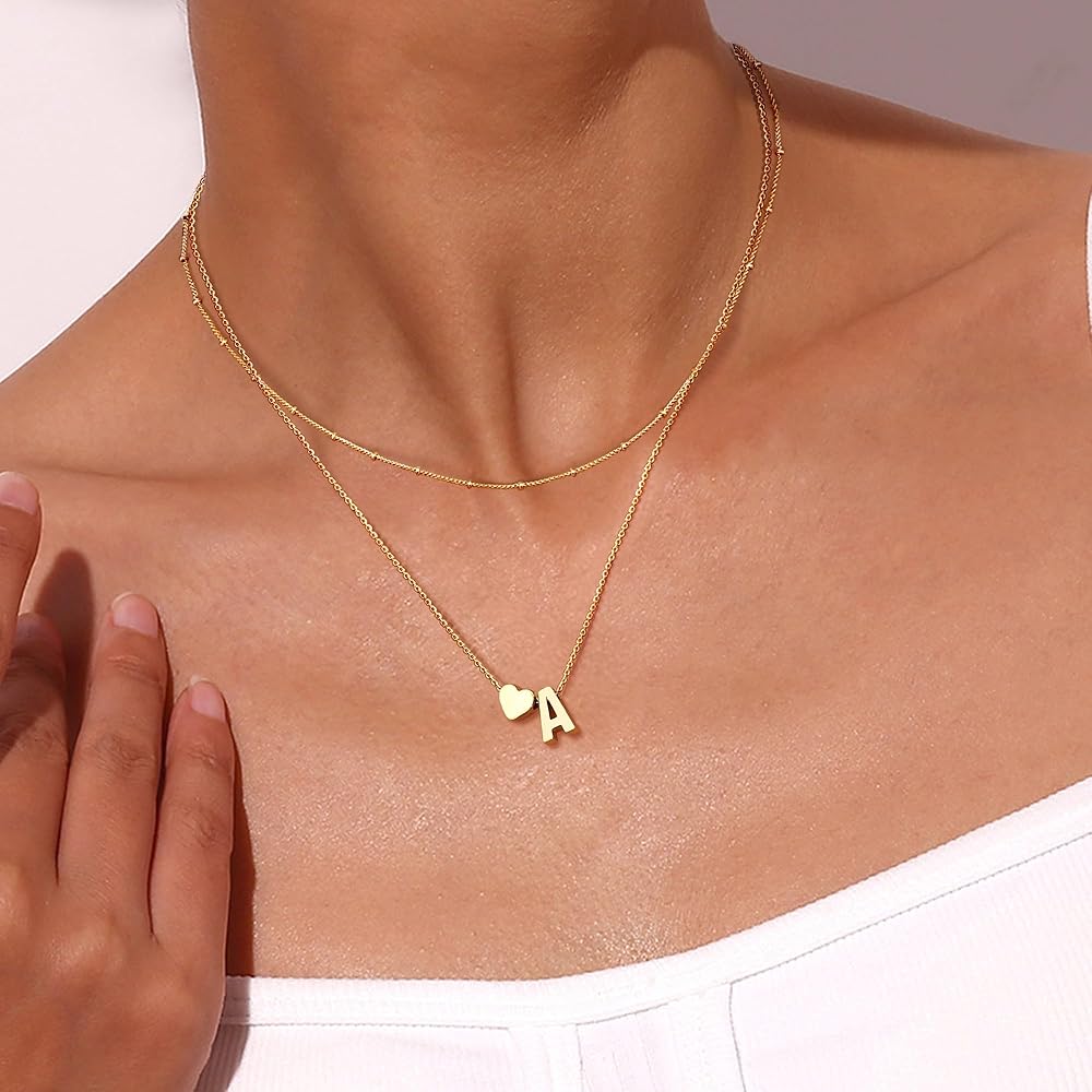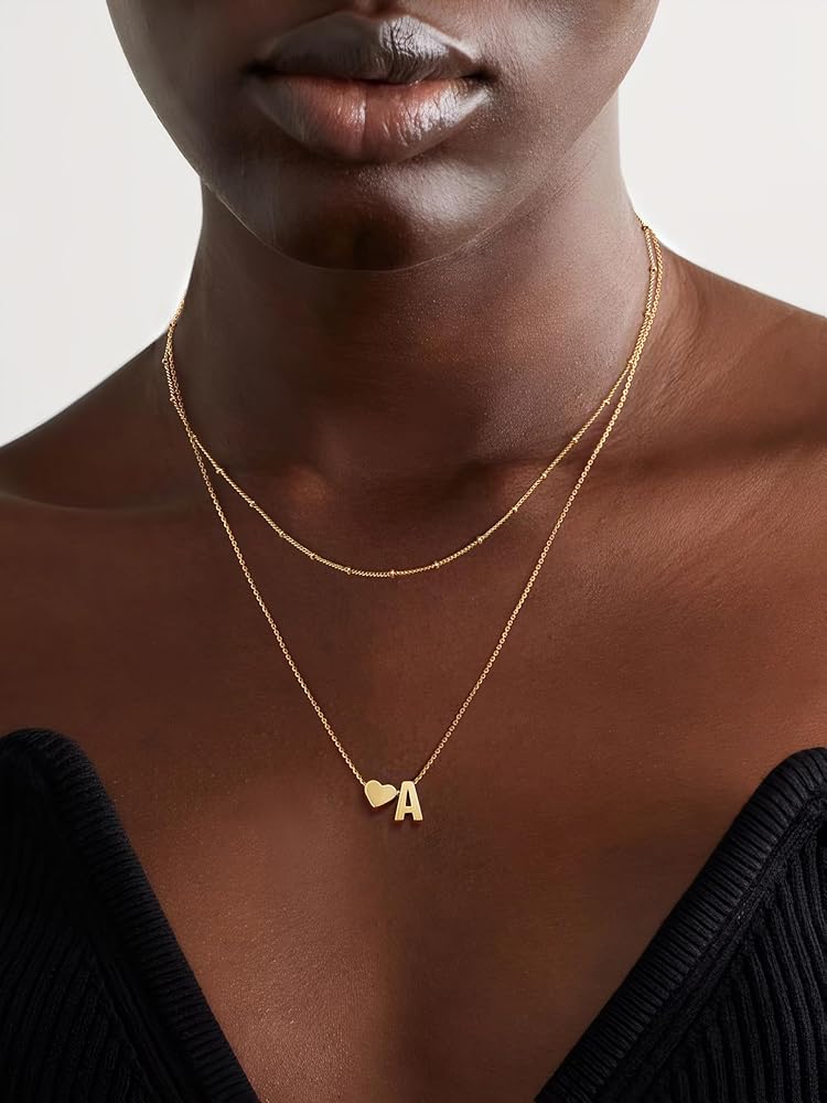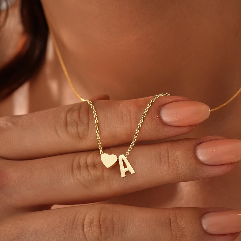 Initial Necklace Size: 16"+2" Bead Chain Choker Necklace, 18"+2" Heart Initial Pendant Necklace; The Letter Tag Pendant: About 0.23”*0.39”, With 0.8mm Wide Box Chain, Lightweight and Simple Fashion! Adjustable Chain Help You Find a Comfortable Length