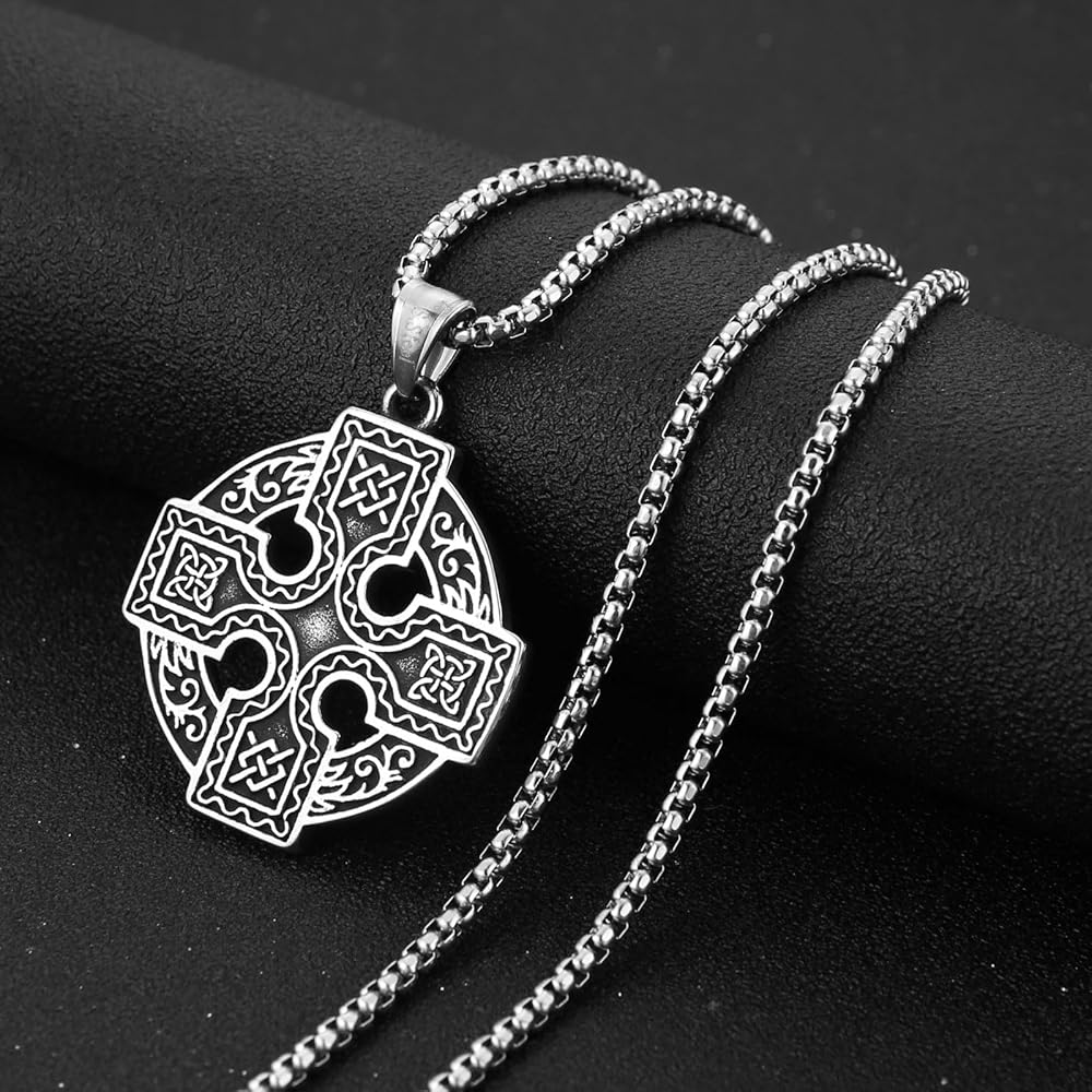 HZMAN Stainless Steel Celtic Knot Necklace for Women Men Celtic Cross Viking Rune Irish Triquetra Trinity Knot Pendant Jewelry Gift
