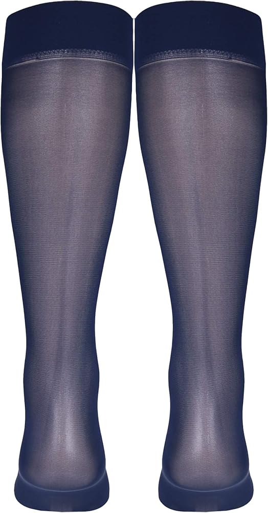 NuVein 8-15 mmHg "Mild Strength" Sheer Compression Stockings for Women. Made in the USA, NuVein fashionable designer knit hosiery has a 20 denier nylon see-through opacity. The ultimate lifestyle garment resembles classic dress nylons (similar to short knee-high pantyhose) for a traditional fit in boots, heels and evening wear flats or wedges. Constructed with smooth durable completely latex free yarns to enhance comfort and reduce sensitivity. Therapeutic massaging graduated compression helps improve circulation and revitalizes legs with the added benefit of leg shaping and enhanced contouring of cankles, swollen ankles and feet. An 8-15 compression rating is suitable for users with healthy legs (no visible symptoms) for proactive wear that heals while it conceals. Always confirm the correct compression strength prior to purchase (this is critical in the active output of the garment to promote: recovery, circulation, and healthy legs). Ideal for nurses, prevention of varicose veins, or extended periods of inactivity (sitting and standing) where blood pooling or tingling (falling asleep in limbs) may occur. Package includes one pair.