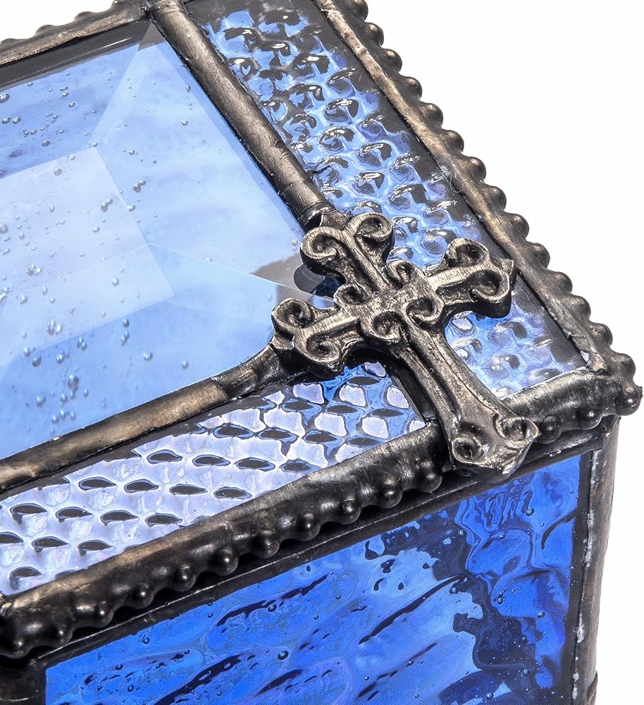 Christian Symbolism: Adorned with a metal filigree cross on the top, this glass box symbolizes our Christian faith, adding a spiritual touch to your space.