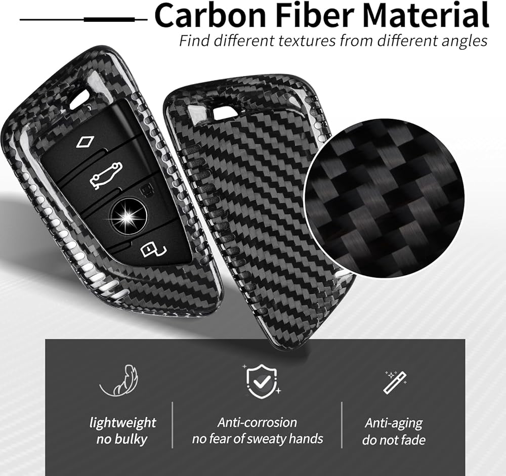 Genuine Carbon Fiber Construction: Elevate your vehicle's aesthetics with our key fob cover crafted from real carbon fiber material which is it is high strength, heat resistance, resistant to rust and corrosion, anti-aging, non-fading, also a long lifespan calculated in years
