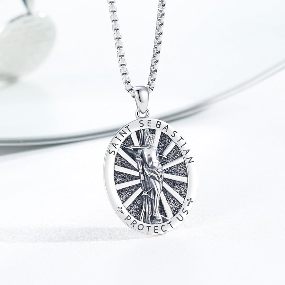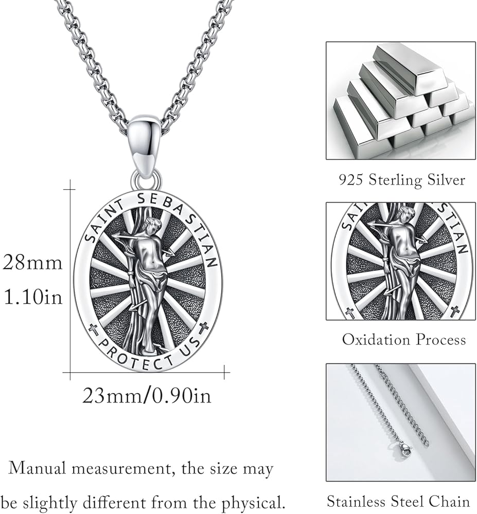 Oval Saint Sebastian Pendant Material: St. Sebastian necklace pendant is made of 100% 925 sterling silver and oxidation process process. which is nickel-free, lead-free and cadmium-free, hypoallergenic. It is safe for your skin! STAINLESS STEEL CHAIN