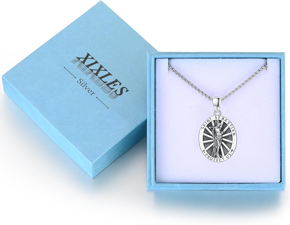 Jewelry Box Package: Sterling silver st Sebastian necklaces are well packaged by boxs with a polishing cloth. Perfect necklaces amulet protection for men women, friends, couple, family, lover, on Birthday, Anniversary, Christmas, Graduation, Valentine's Day, etc