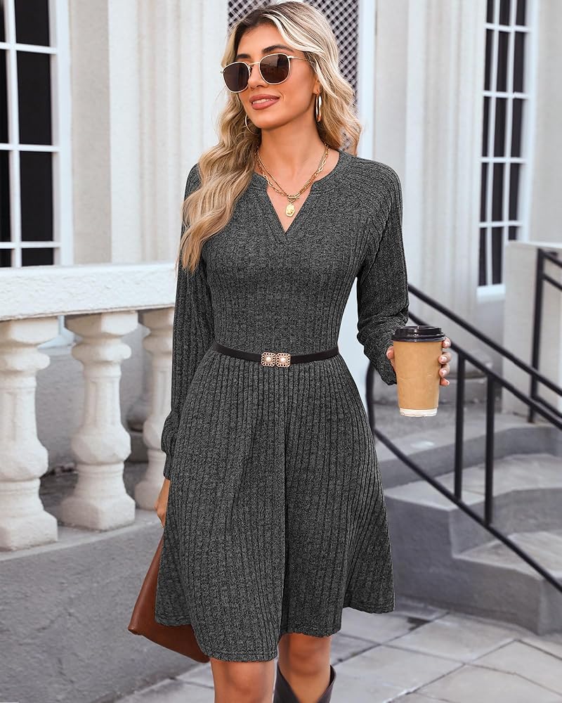 Easy to Match: our women's v neck fall dresses is knee-length designed so you can wear it with leggings or without; Dressing up with heels or keep it casual with flats are also nice; They are your fall winter essential fashionable items
