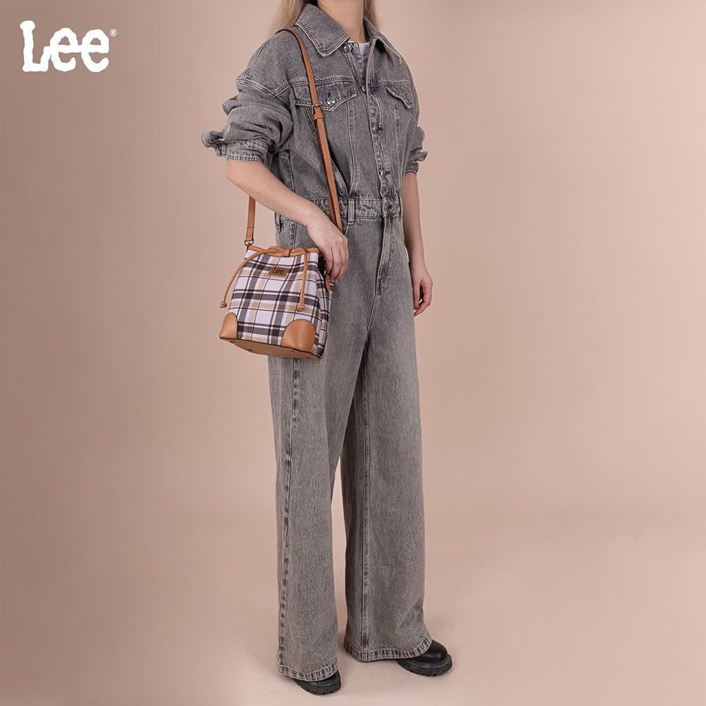 Lee bucket shoulder handbag crafted from canvas and PU material, this bucket bags for women combines practicality with a trendy look.