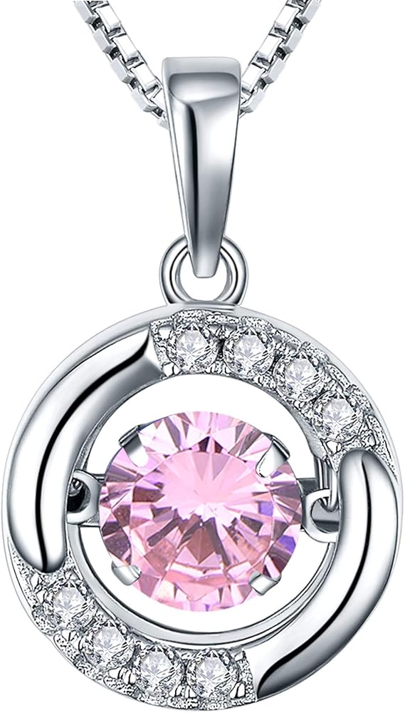 YL Halo Necklace 925 Sterling Silver Solitaire Pendant Round Birthstone Jewelry for Women