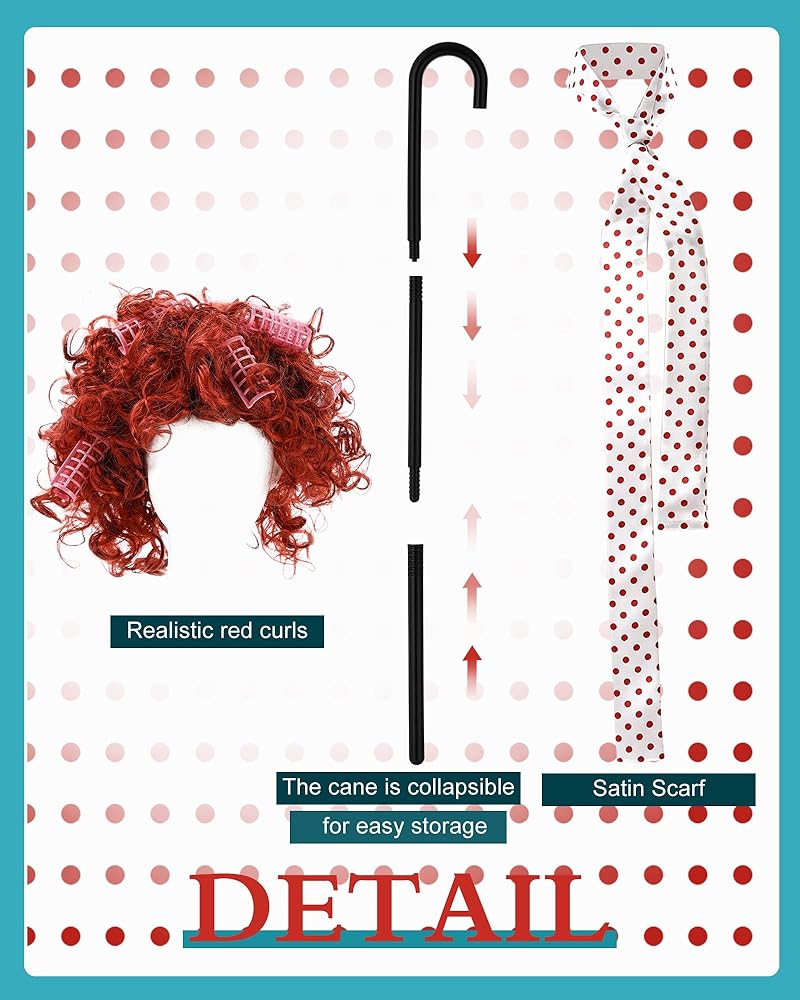 • Nice Combination: you will receive 1 set of Halloween costume for women including grandma dress, old lady sweater, headscarf, granny wig with wig cap, cane, faux pearl necklace and glasses with chain, enough quantity and good combinations to meet your needs, which can help you dress like an old lady