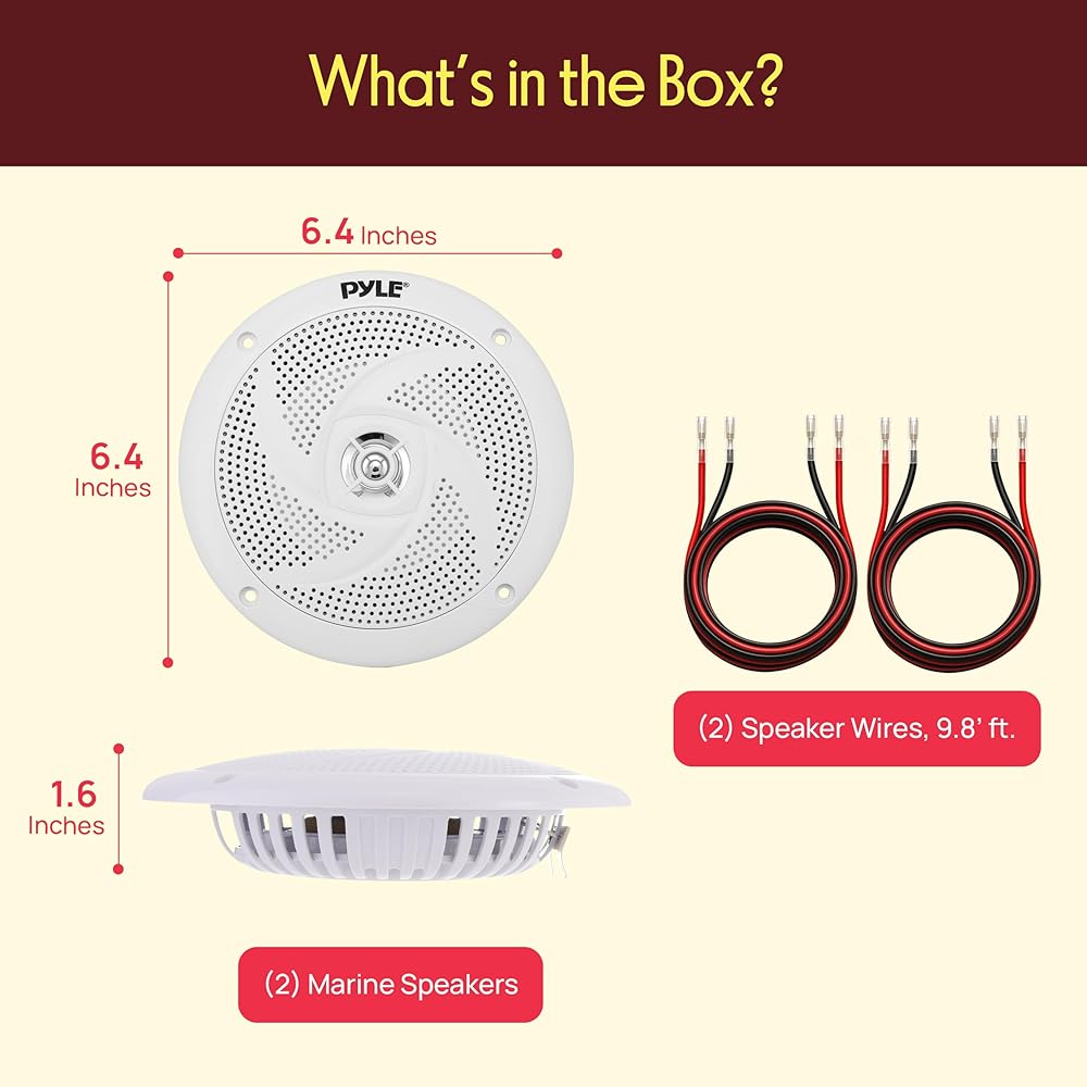 5.25'' Low-Profile Marine Grade SpeakersWaterproof Rated Marine Speakers, Low-Profile Slim Style Speaker Pair, 5.25''-inch (180 Watt)Features:Includes (2) Component Speakers