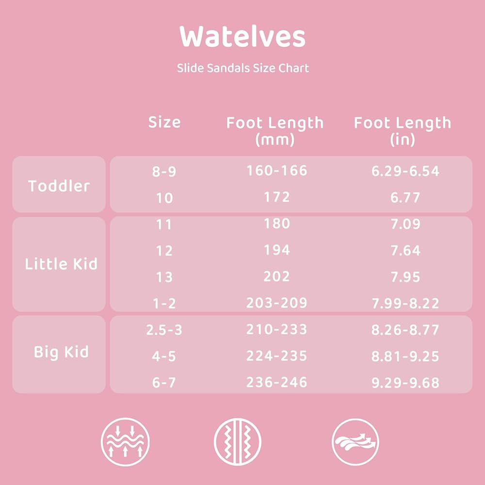 【Cute Style】: These girls sandals of Watelves are a well-designed style from our brand. If you are looking for cute and cozy sandals for your kids, please don't miss the Watelves' girls slides.