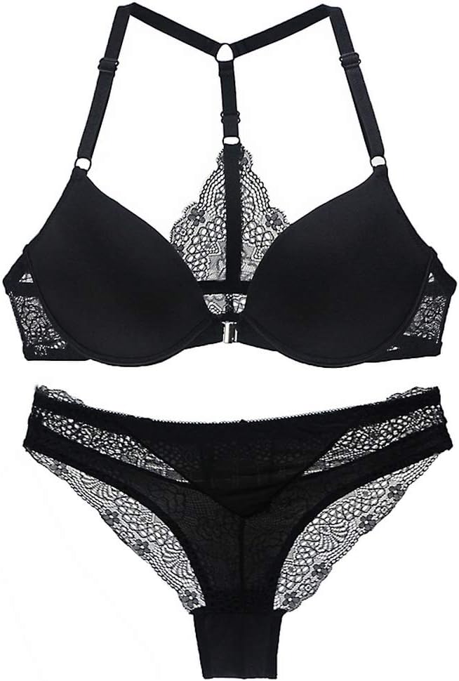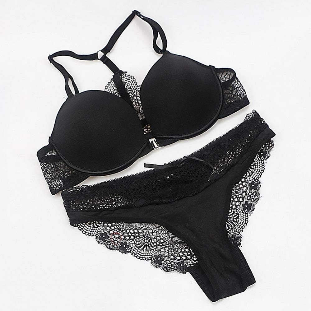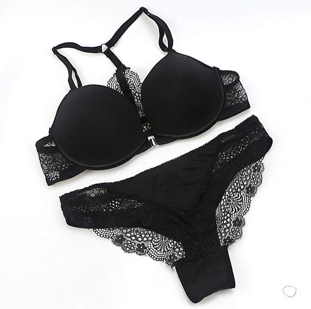 This soft and cozy bra features lightly lined, underwire cups, a front hook closure, satin bow accents, adjustable spaghetti straps, Y-strap and lace band with a scalloped trim, and T back strap floral lace racerback.