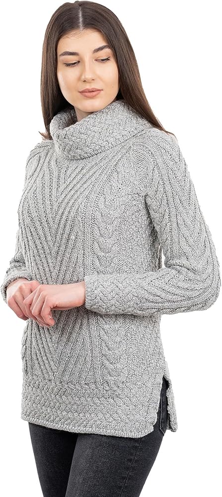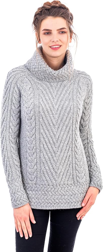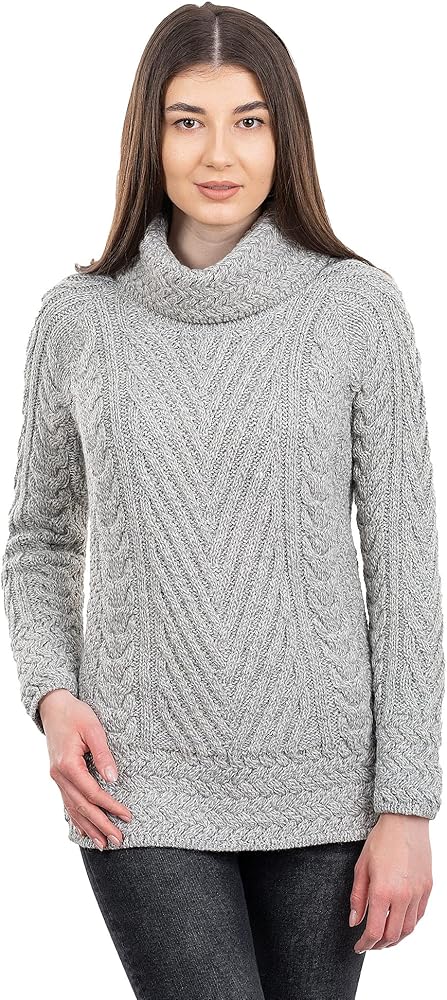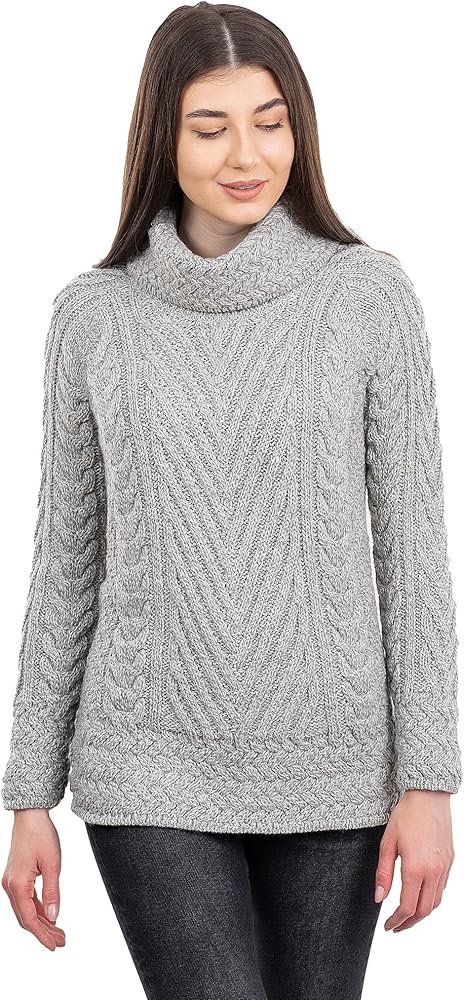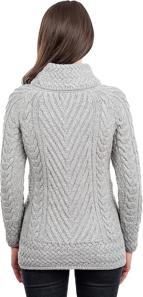 Like all of our Aran sweaters as SAOL, this lovely piece is made from a beautiful wool blend of 30% merino wool and 70% acrylic fibers. This blend is super soft to touch, warm, breathable, and sturdy.