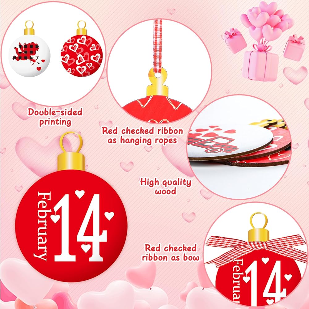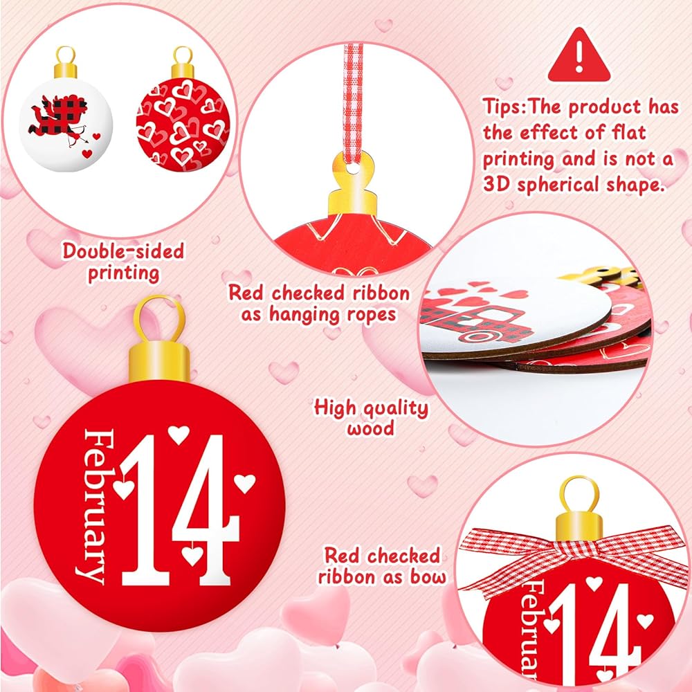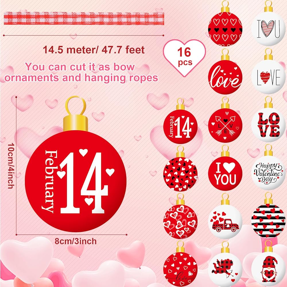 Valentine's Day Decorations: you will get 16 pcs Valentine's Day wooden balls ornaments with long red checked ribbons (14.5 meter/ 47.7 feet) that you can cut to length for hanging and thin bow decorations. Good Valentine's Day hanging ornaments for tree decorations.