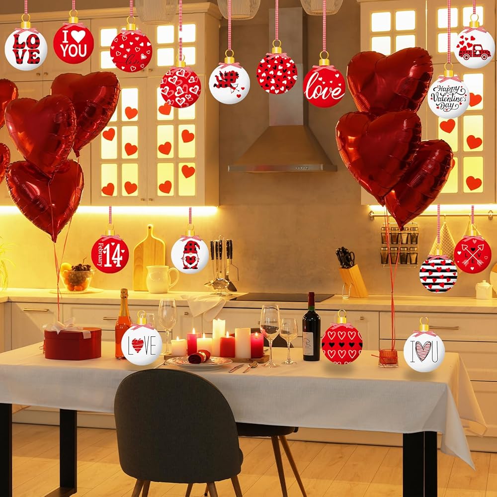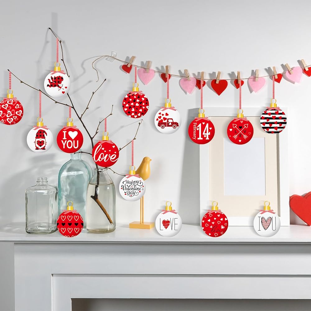 Valentine's Day Design: tree ornaments are double-sided printed and designed with valentines elements in red & white colors. Love, miss, hug, heart... suitable for Valentine's Day decorations, Sufficient quantity, proper size and cute designs can easily meet your Valentine's Day party decoration needs.