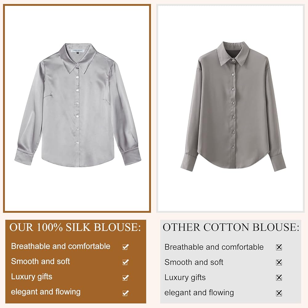 Care instructions: This women 100 percent silk blouse can be machine washed or hand washed to avoid sun exposure and high temperature washing.the womens silk button down shirt colors may have slight errors depending on different monitors,add it to your loved wardrobe and add new decent styles tops to your seasonal formal and informal clothes,no wrinkle,not see through,smooth,easily highlight your elegance and charming personality,show your delicate necklace,classic will never go out of style
