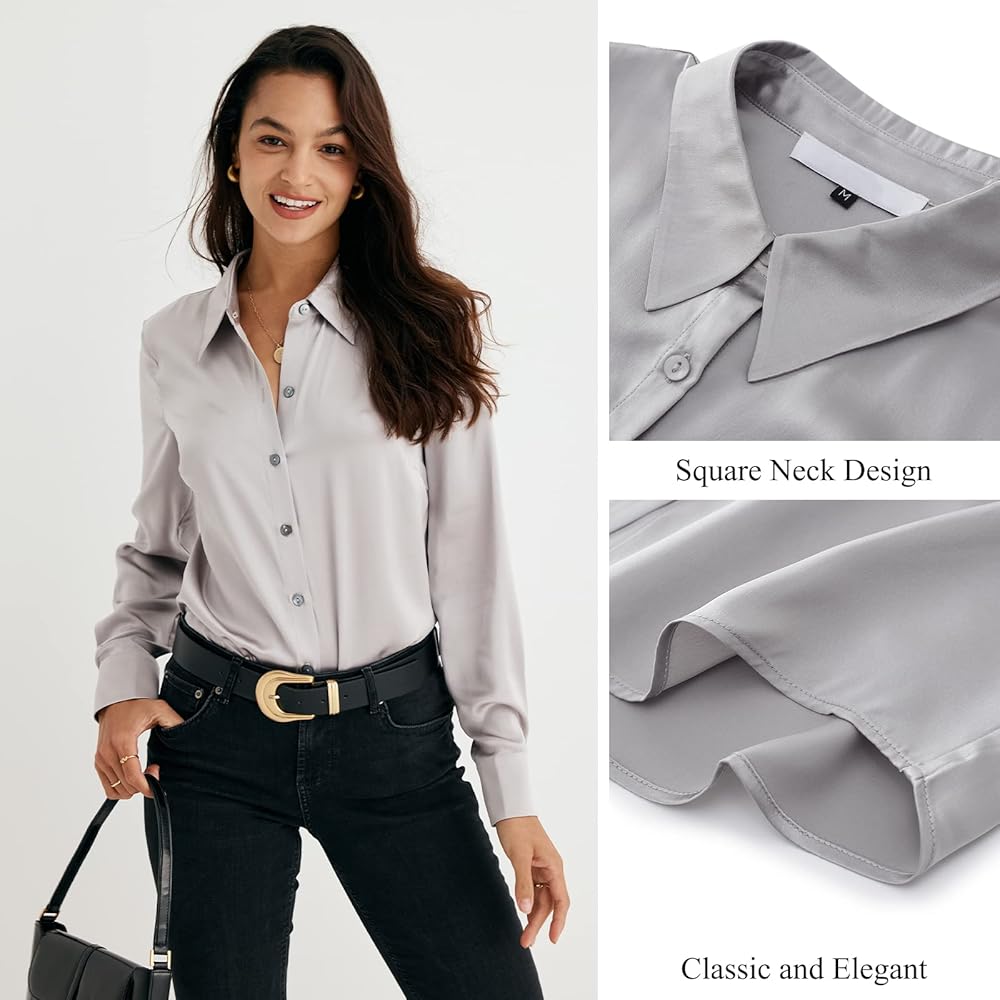 Variety Occasions:Our women's silk elegant blouses keep temperature around your skin at an optimal level ,perfect for casual daily life,shopping,business,wedding,vacation,party,date,street wear,working, office,school,holiday, night out,street wear, travel,school,club,outdoor etc,our classic silk shirts suitable for summer,autumn,winter and spring.Wear this women's silk blouses with a nice skirt ,pants or a nice pair of jeans!Dress up yourself get a charming temperament and a beautiful mood