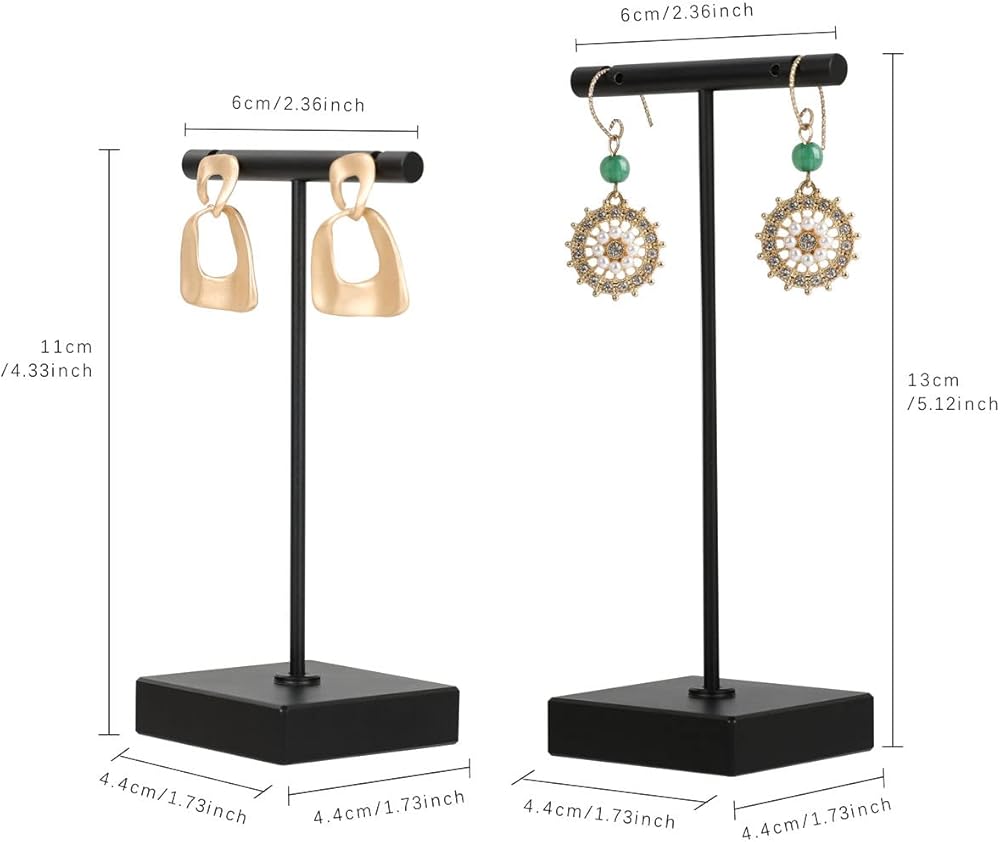 GemeShou 2pcs metal earring holder, Black T bar earring display stand, mini hangers for earrings Jewelry Photography, earring storage organizer【Black-Square Base 2pcs Height 4.3 and 5.1 inch】