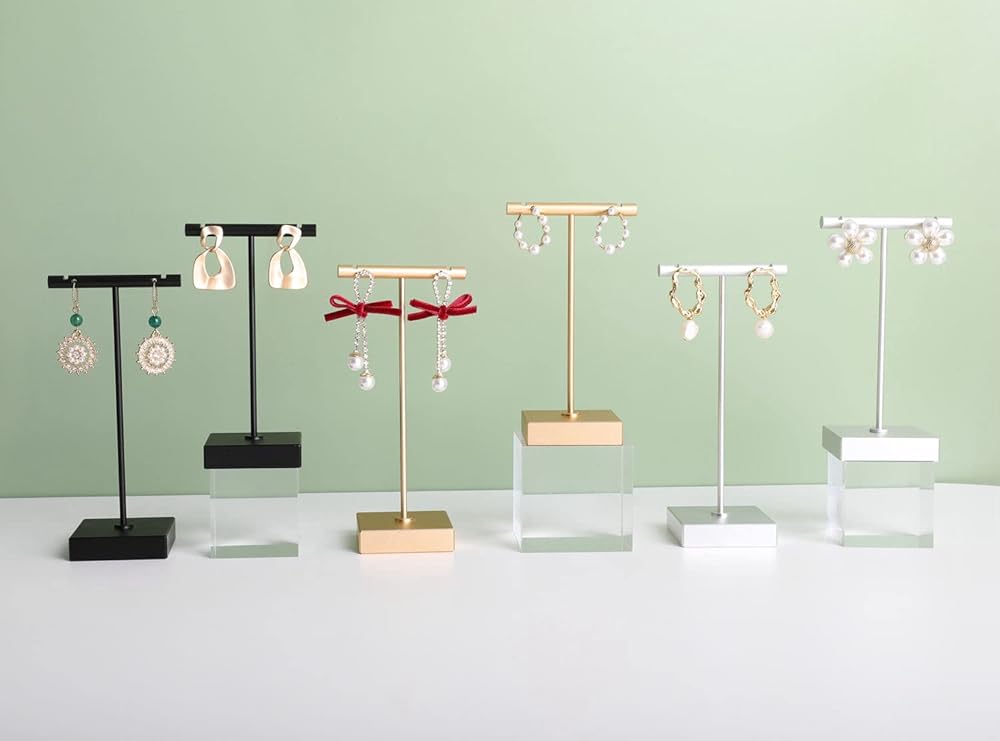 ✔ Stable Base: The square base design is big and weighted enough, to keep the earring stands upright and stable, it will not ever tip over by the weight of the jewelry. Our metal jewelry earring stands are all use high quality aluminum alloy in the market. You will feel the solid and firm when you get them.