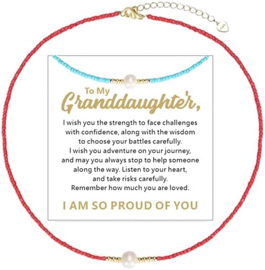 To My Granddaughter Necklace, I Am So Proud Of You Freshwater Pearl Necklace, Bohemian Choker Handmade Pearl Beaded Pendant Necklace Tiny Dainty Minimalist Jewelry Gifts for Women Teen Girls