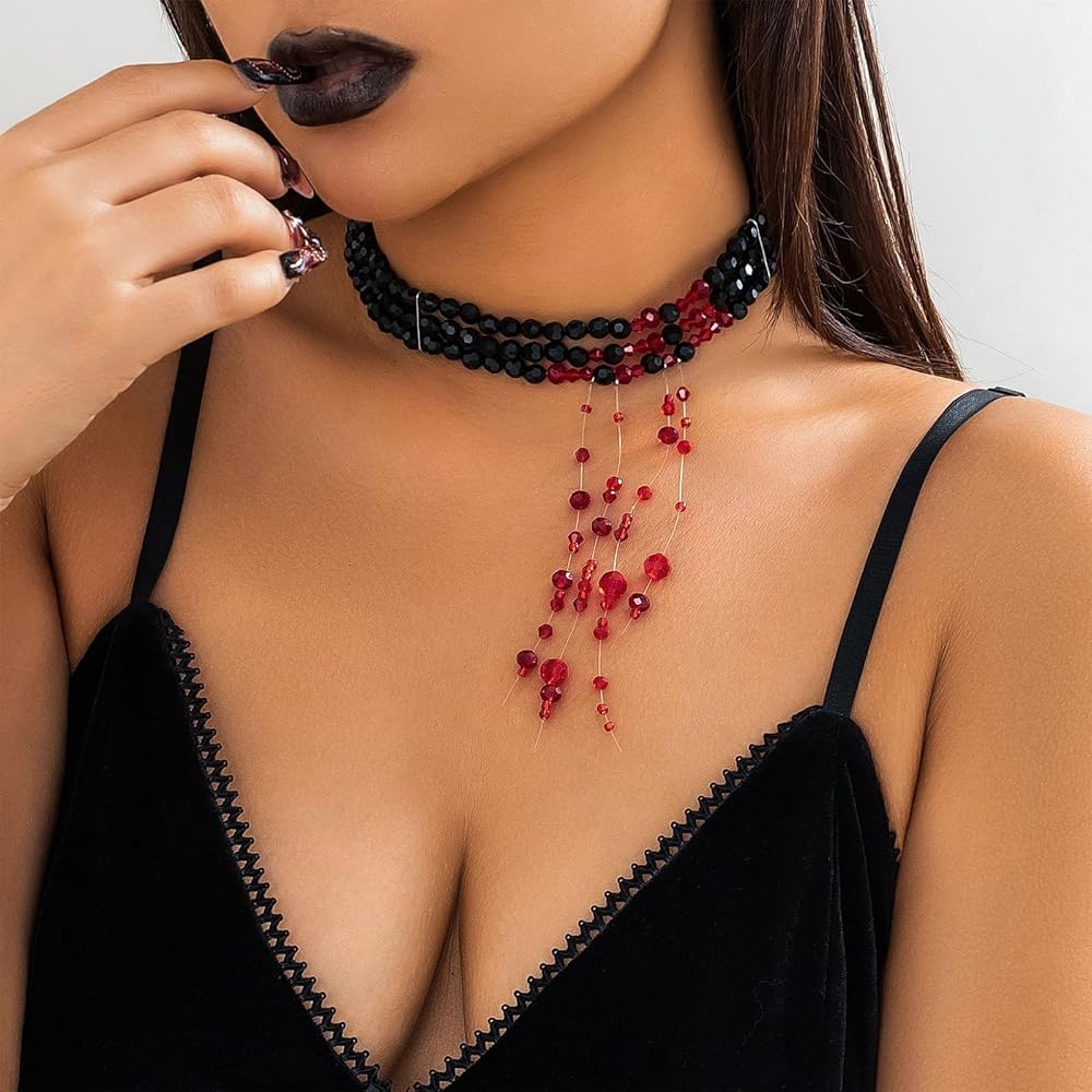 GOTHIC CHOKER NECKLACE FOR WOMEN: This gothic vampire vial pendant necklace is so beautiful, mysterious black and bright red take us into the dark age of gothic. It's perfect for wearing on occasions like Halloween.