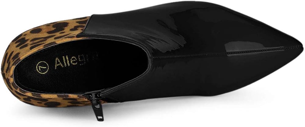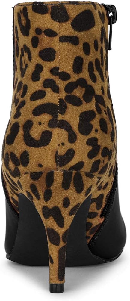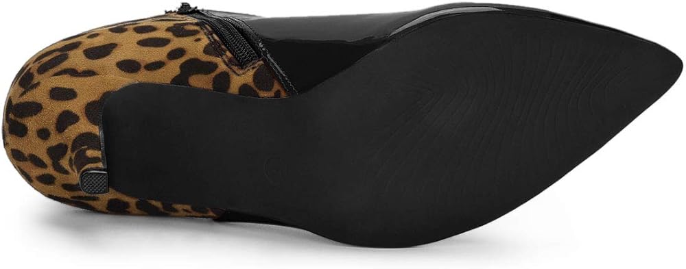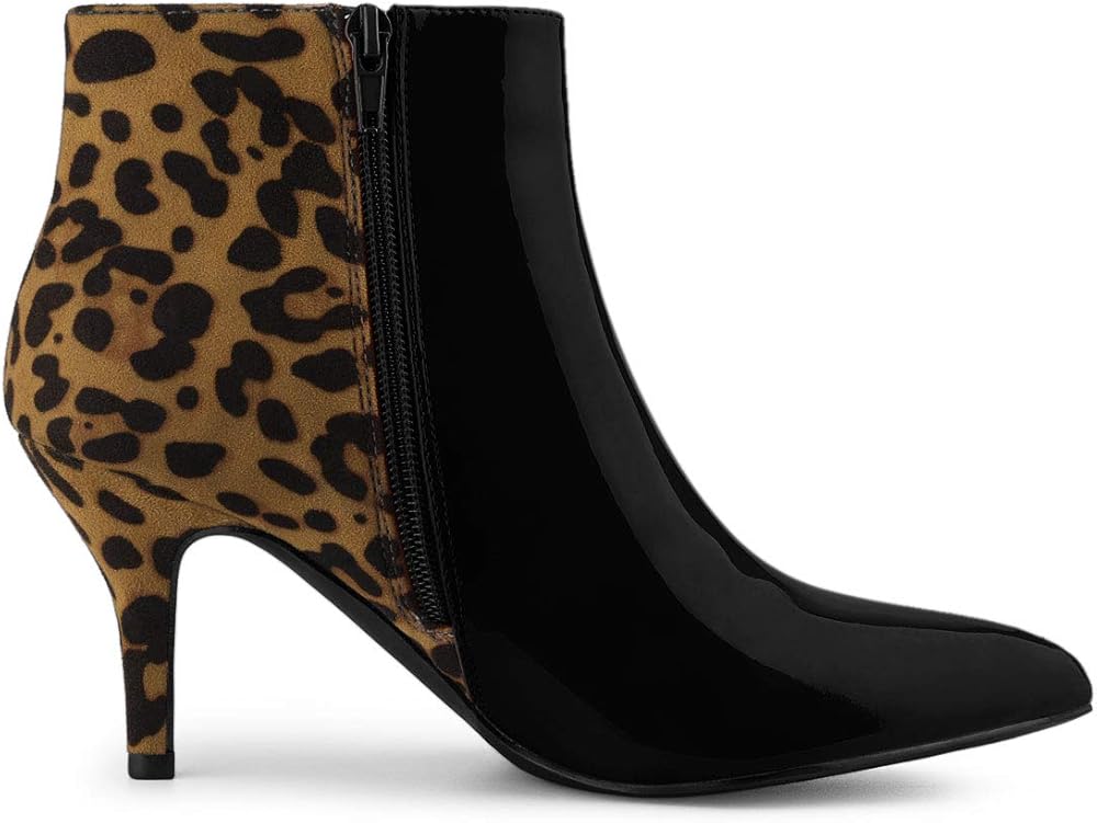 - Heel Ankle Boots, Leopard Printed, Color Contrast, Zipper Closure