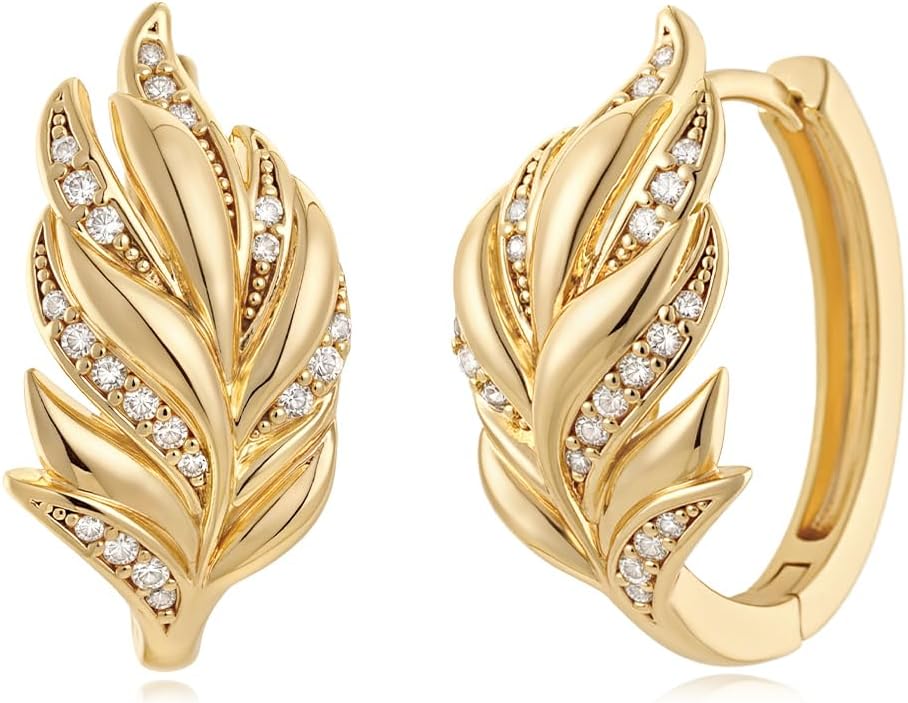 MYEARS Women Earrings Gold Huggie Hoop Cubic Zirconia 14K Gold Plated Small Simple Hypoallergenic Everyday Jewelry - Flower and Tree