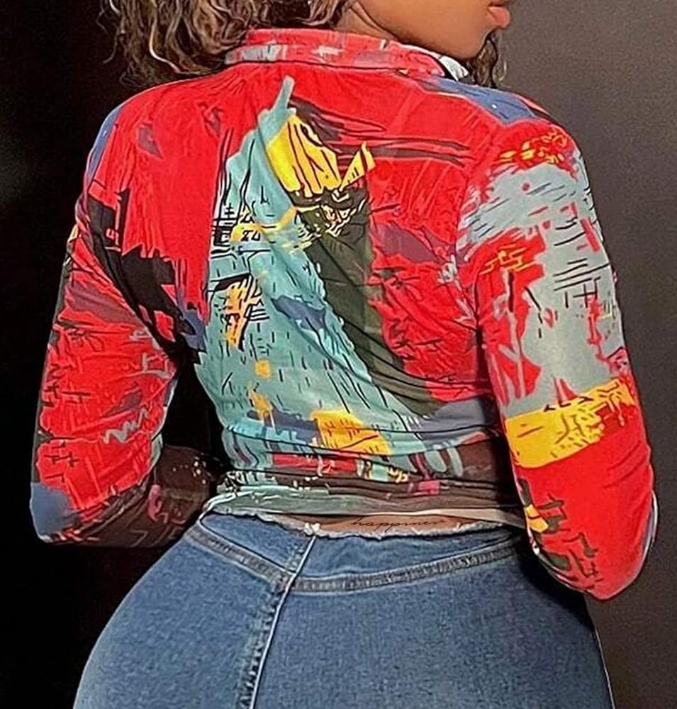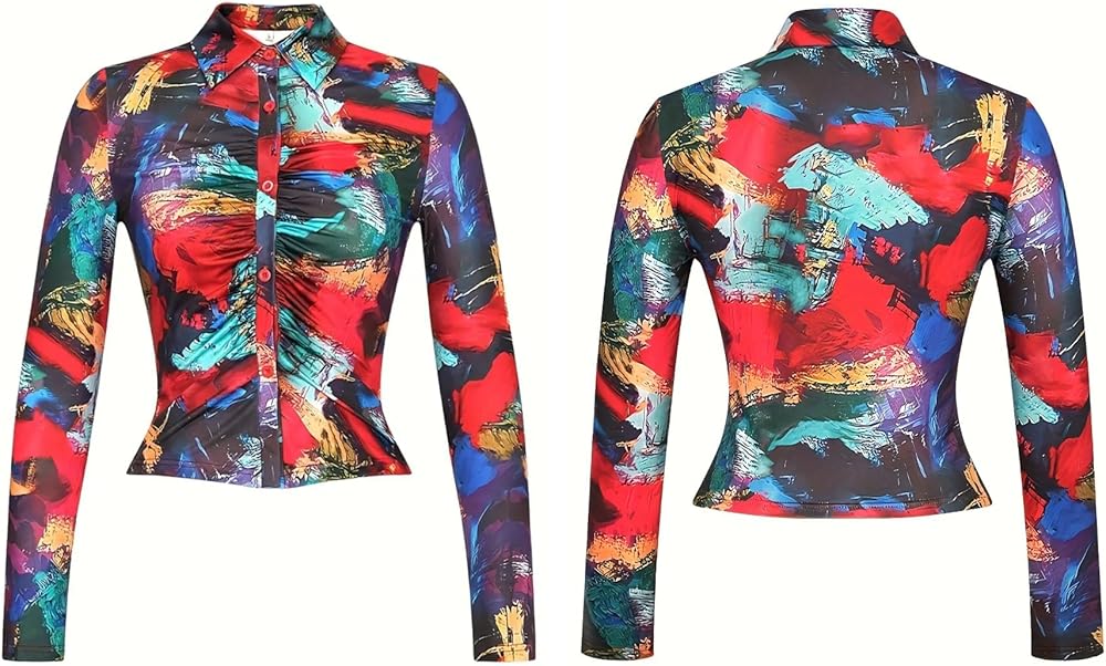 LovelyWholesale Sexy Tie Dye Button Down Shirts for Women Long Sleeve Bodycon Tops