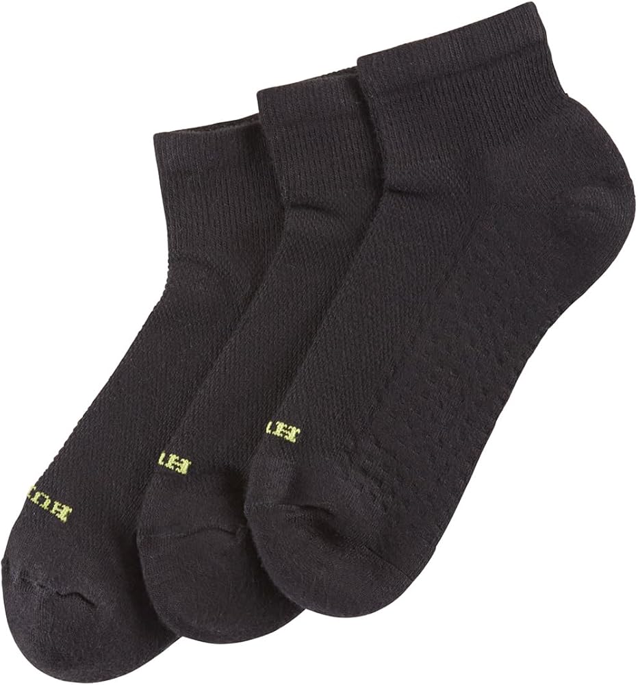 HUE air cushion quarter top 3 pair pack socks feature a cushioned foot with ventilation and are perfect for any activity.