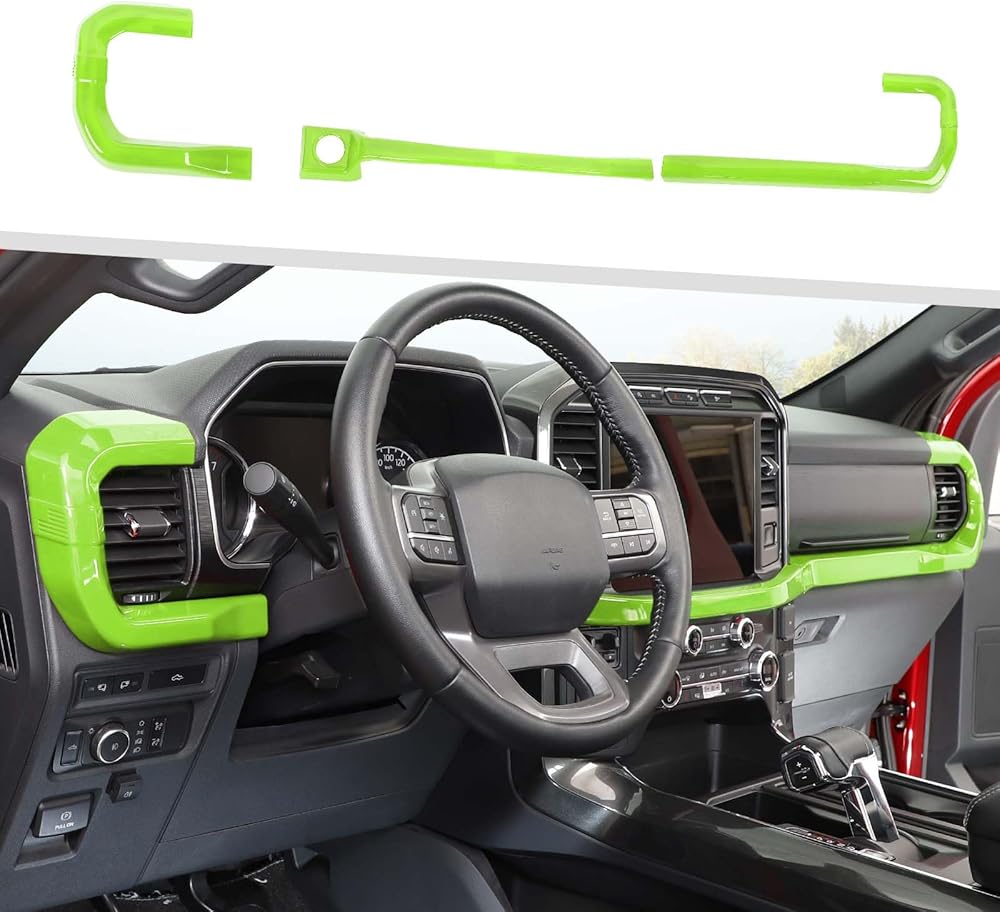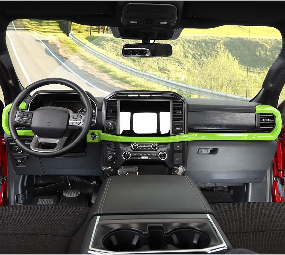 Jimen Compatible with Ford F150 2021-2025, 3PCS Center Console Dash Panel Dashboard Cover Interior Trim Accessories (Green)