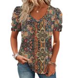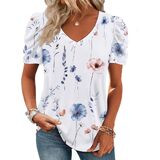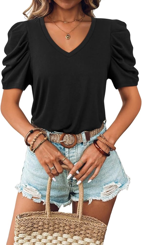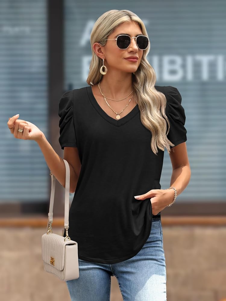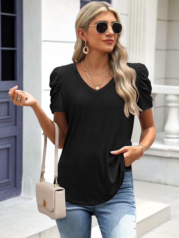 Design - Classy tshirts, simple solid color Tops, Unique V-neck and puff sleeve design.