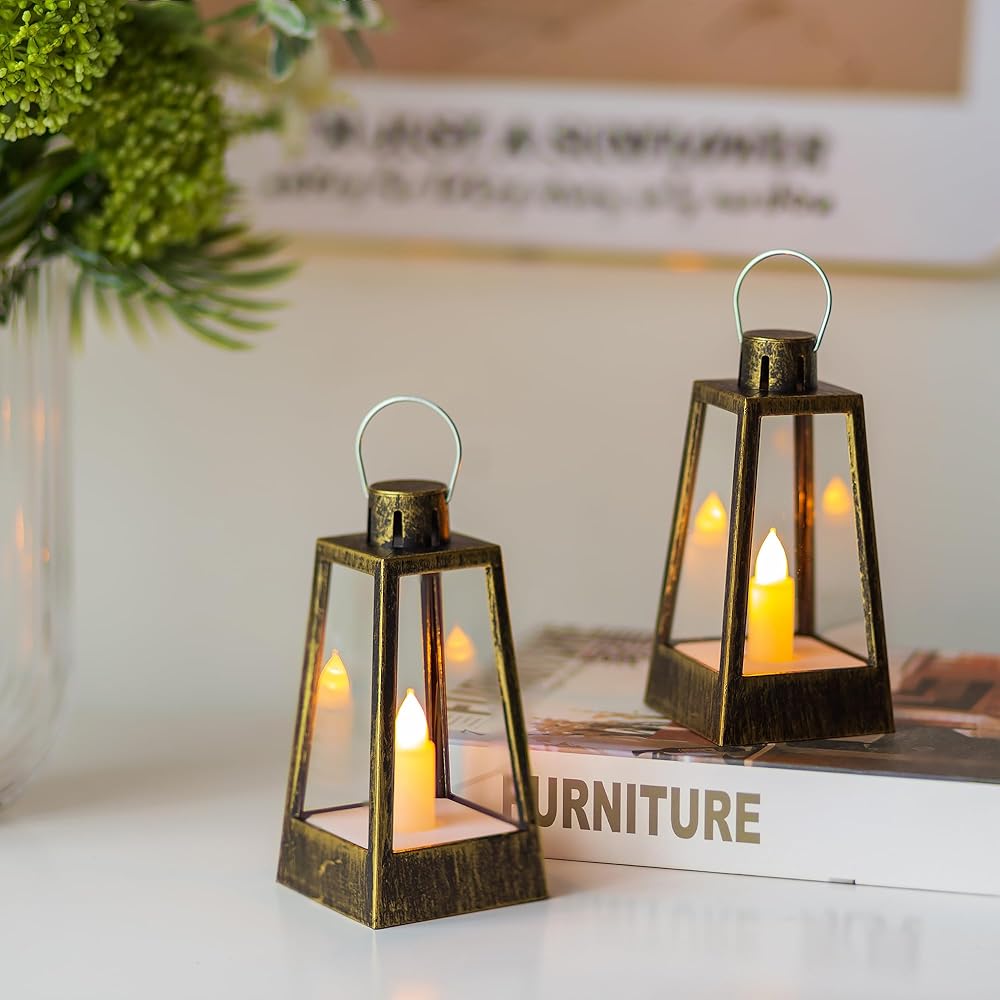 Flickering Candle: The gold vintage lantern has a built-in flameless candle, flickering like a real candle, emiting yellow candlelight glow to create a warm and romantic atmosphere, the light lasts for more than 120 hours. With this fume-free, odor-free, and fire-hazard-free LED lantern, you can enjoy the same ambiance as a real candle.