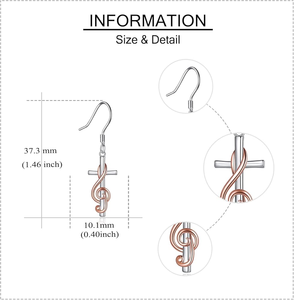 【Material Type】This Musical Note Cross bracelet and earrings are made of 925 Sterling Silver which is Nickel-free, Lead-free, Cadmium-free, and Hypoallergenic. Long-Time Wearing Keeps You a Good Health.
