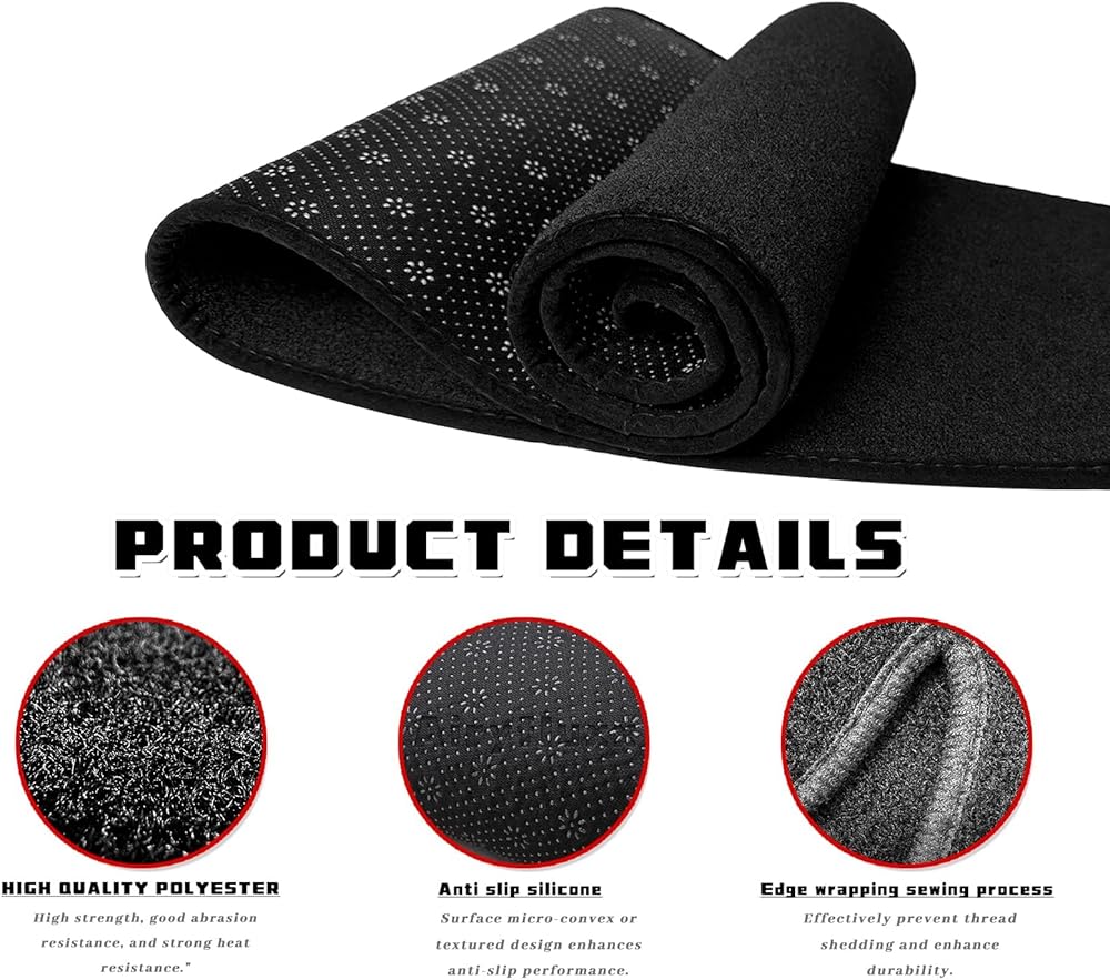 【Optimal Thickness for a Perfect Fit】 Our dash cover mat features an optimal thickness that ensures a snug fit on your dashboard, neither too thin to appear wrinkled nor too thick to cause edges to lift. It maintains a sleek and tidy appearance.
