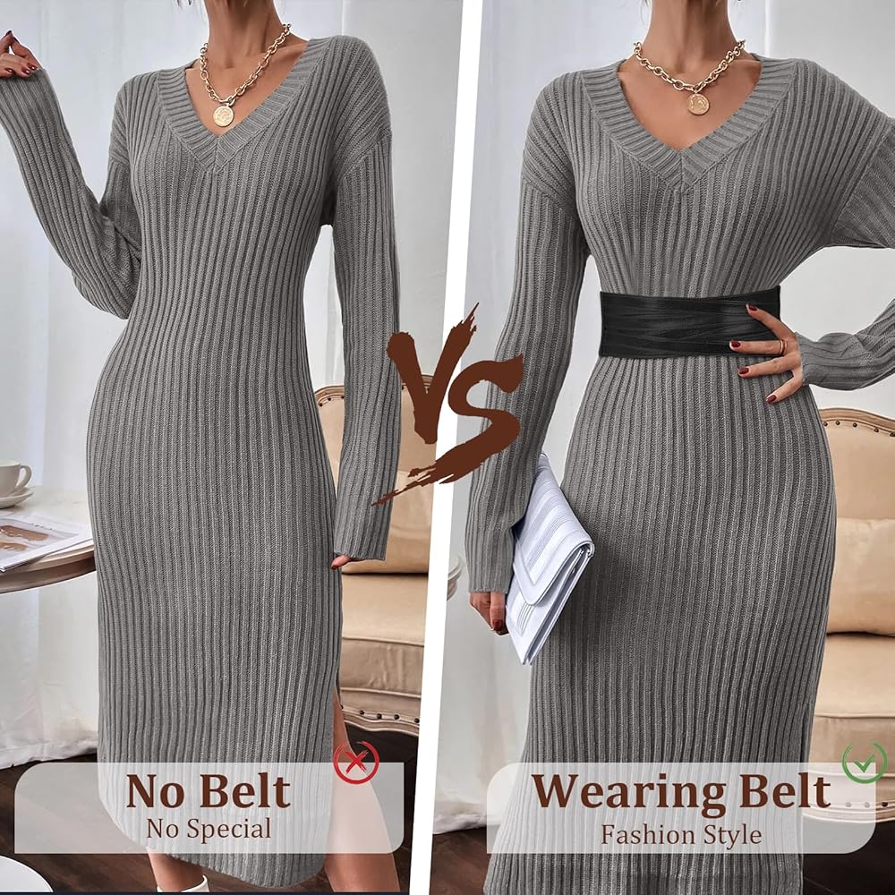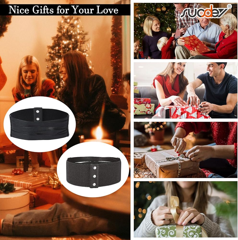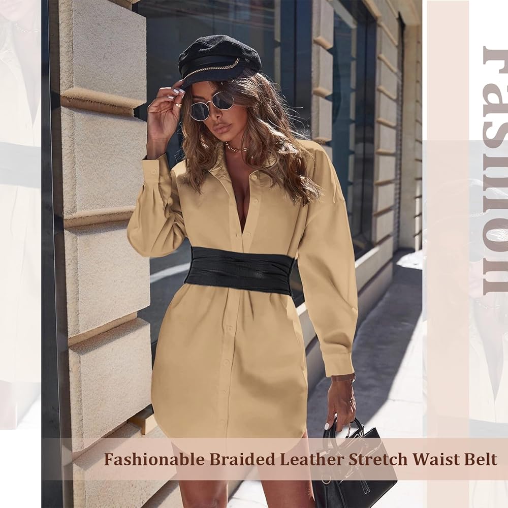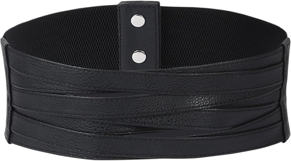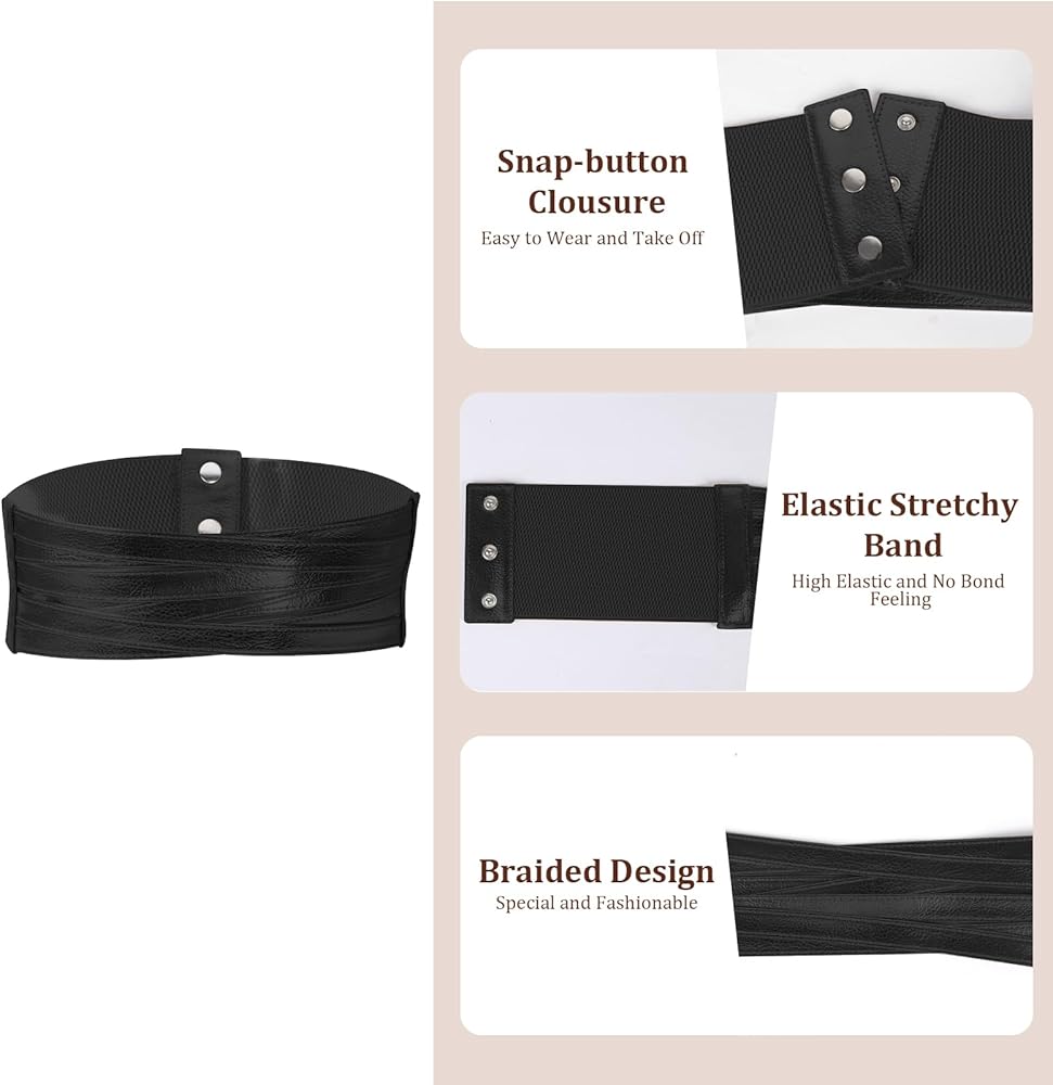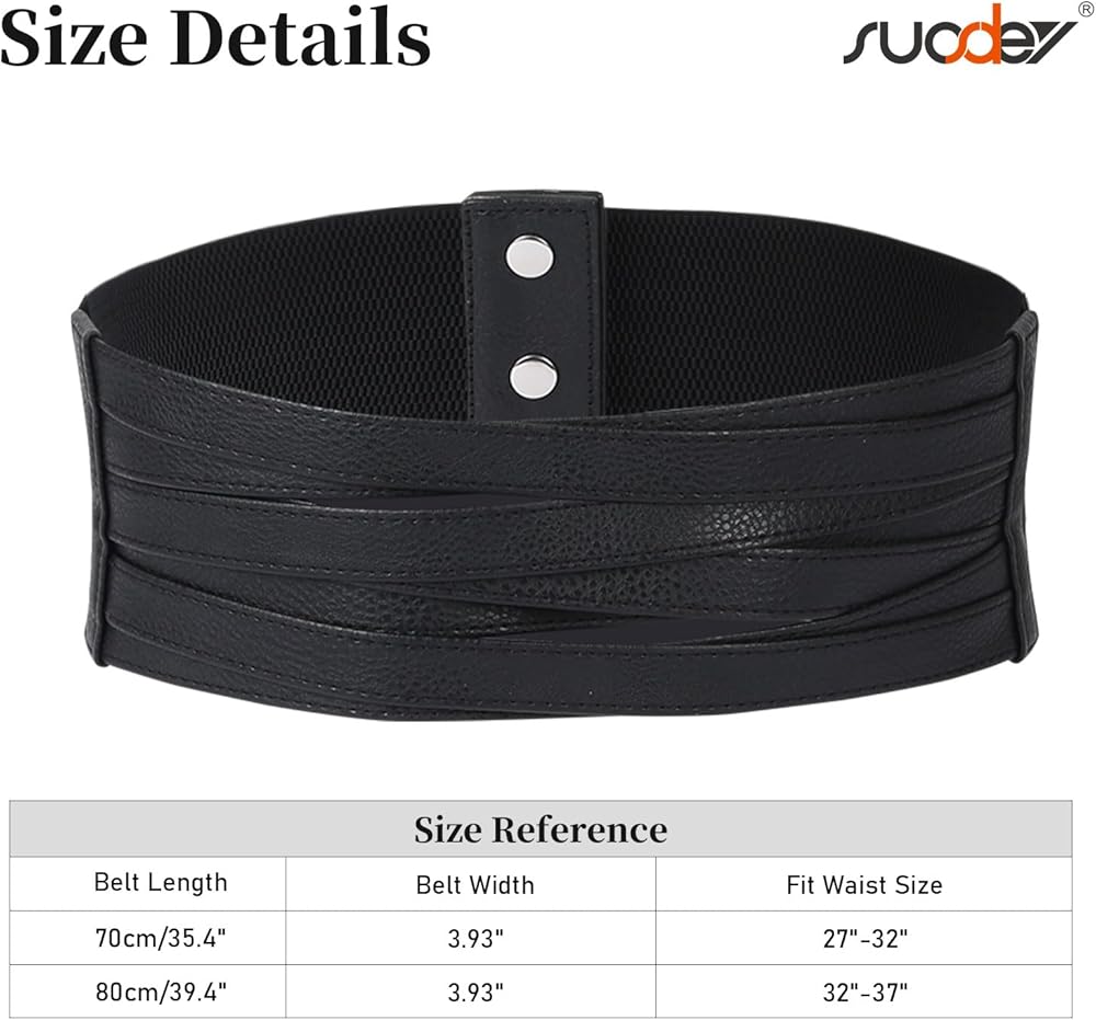 🔥【Belt Material】The fashion women leather wide waist belt is made of high quality faux leather strap and high elastic band . Fashionable and comfortable.