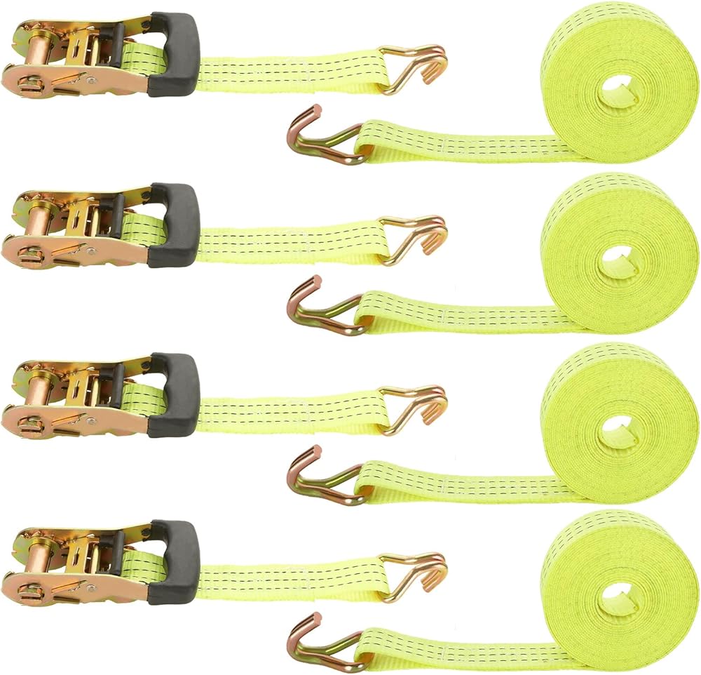 --Heavy-duty 1" x 20" ratchet straps with reinforced edging for secure cargo hauling
