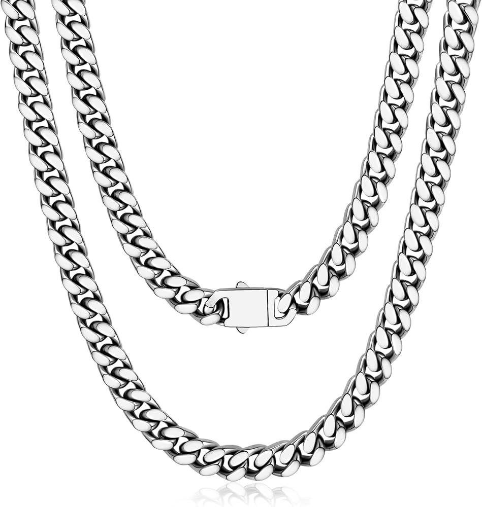 Sturdy Men Cuban Link Chain Necklace: Sturdy construction, well-made Cuban chain necklace, great looking with lobster claw clasp that fasten the necklace securely. Trendy and hiphop jewelry
