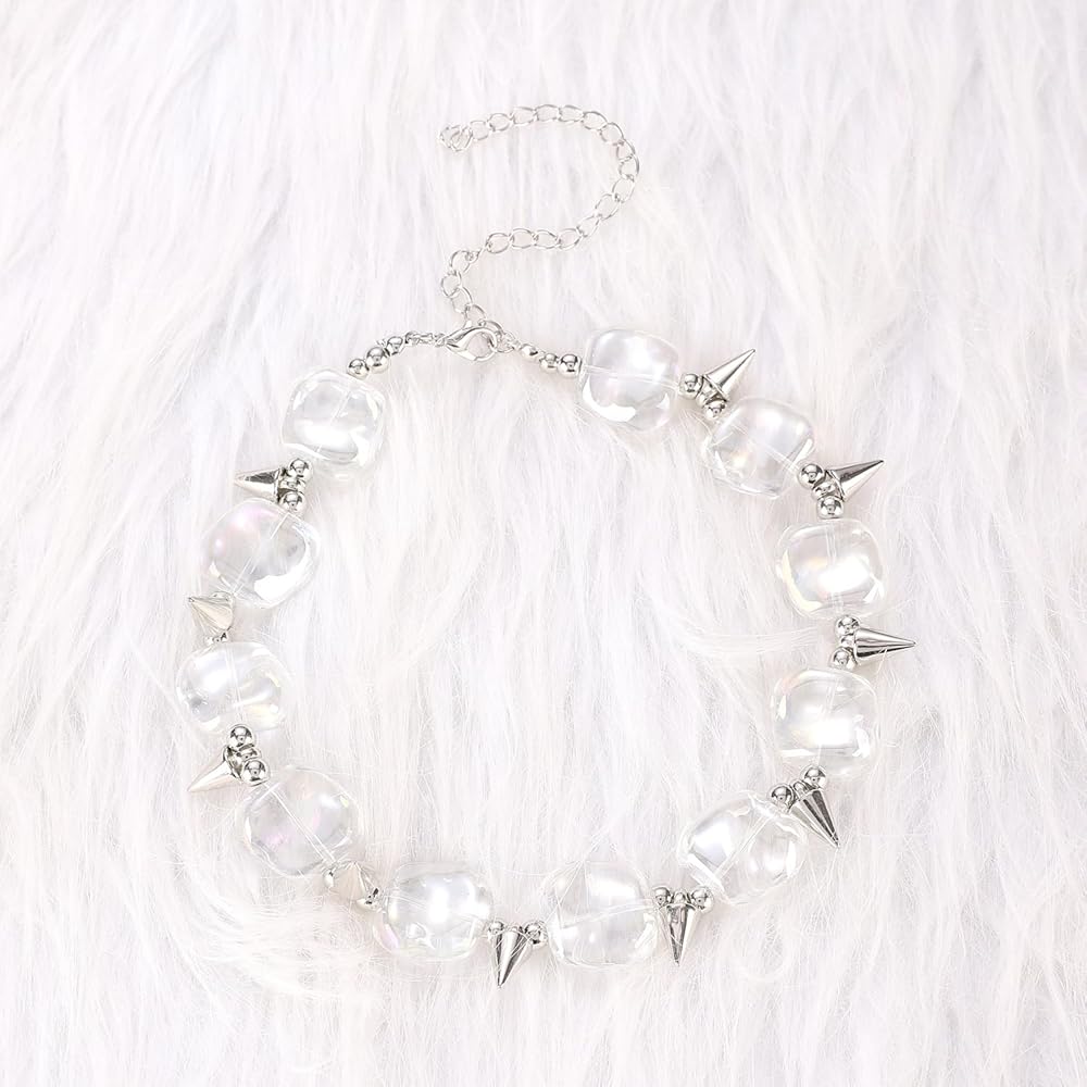 Unique Design: Featuring clear acrylic geometric beads and a beaded ball detail, this necklace offers a modern and eye-catching look.