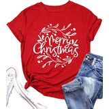 【Design】: Christmas graphic printed; such as Christmas letter; Santa Claus; Christmas tree; Christmas colorful light; There are many letter and pattern prints for you to choose from; Unique V Neck Design; Casual short sleeve;
