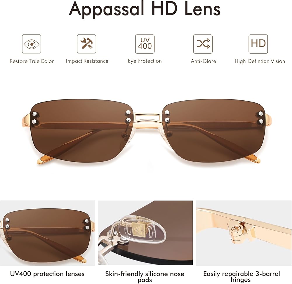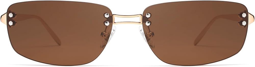 UV400 PROTECTION LENSES – The lenses of the trendy sunglasses for women can filter out sunlight reflected glare, and protect your eyes from long-term damage by blocking harmful UVA and UVB rays.UV400 PROTECTION LENSES - The lenses of the rave rimless sunglasses for women can filter out sunlight reflected glare, and protect your eyes from long-term damage by blocking harmful UVA and UVB rays. Comfortable acetate eartips provide a secure fit.