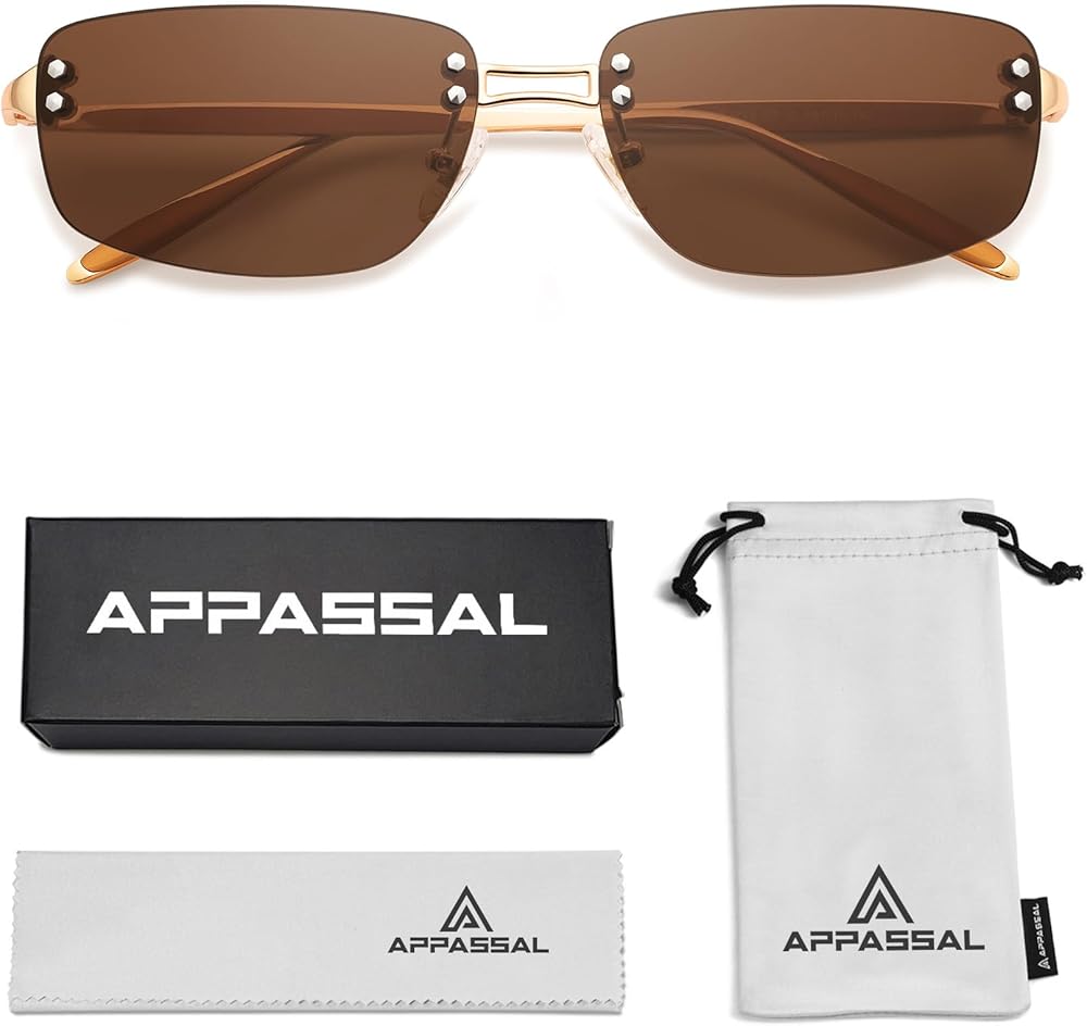 VINTAGE Y2K SUNGLASSES - A sleek rectangular silhouette with lenses overlayed on the wrapped frames. Frames of those Appassal y2k sunglasses are made with combination of solid, lightweight plastic that outlines the silhouette and striking metal details on the nose bridge and temples.