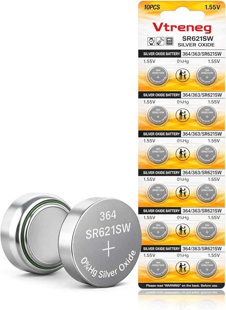 [ High Quality ] 10 pack 364 watch battery adopt high energy density battery cells ,stable output of 1.55V voltage,it provide efficient, safe, and long-lasting power for electronic devices;Vtreneg batteries are CE,ROHS certified.