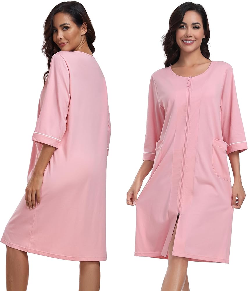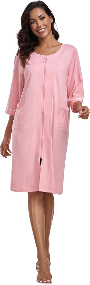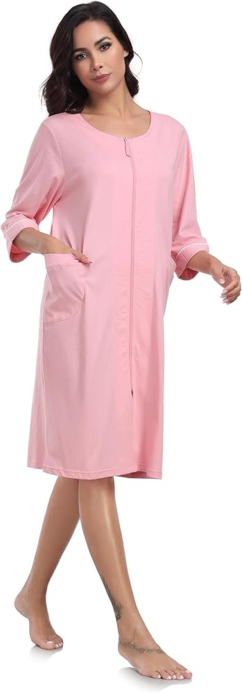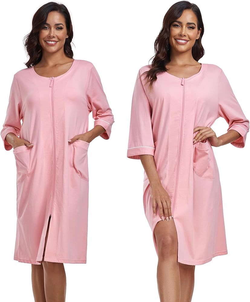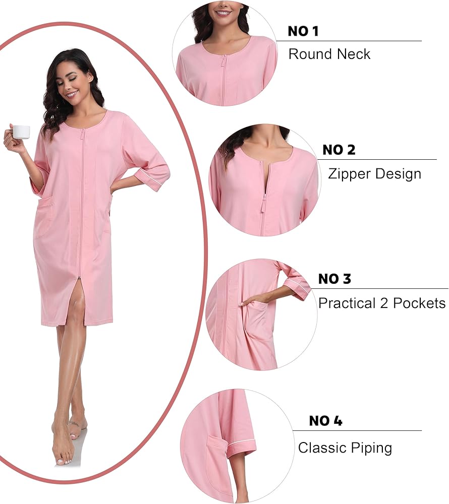 Elegant Design: Featuring a beautiful three-quarter sleeve and mid-thigh length, our robe combines style and comfort. The zipper design allows for easy on and off, while the convenient side pockets are perfect for holding your essentials.