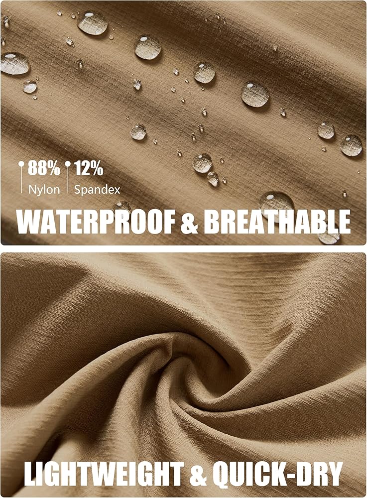 Water-Resistant Fabric: Equipped with water-resistant capabilities, our camping outdoor cargo pants keep you dry even during unexpected light rain, improving your hiking experience.(Sun Protection UPF 50+)