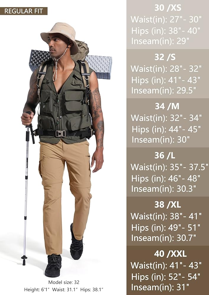 Convertible Zip-Off: Featuring a zip-off design, these outdoor pants can effortlessly convert from pants to shorts, providing versatile solutions to different weather conditions during hiking, fishing, safari, travel, or camping.