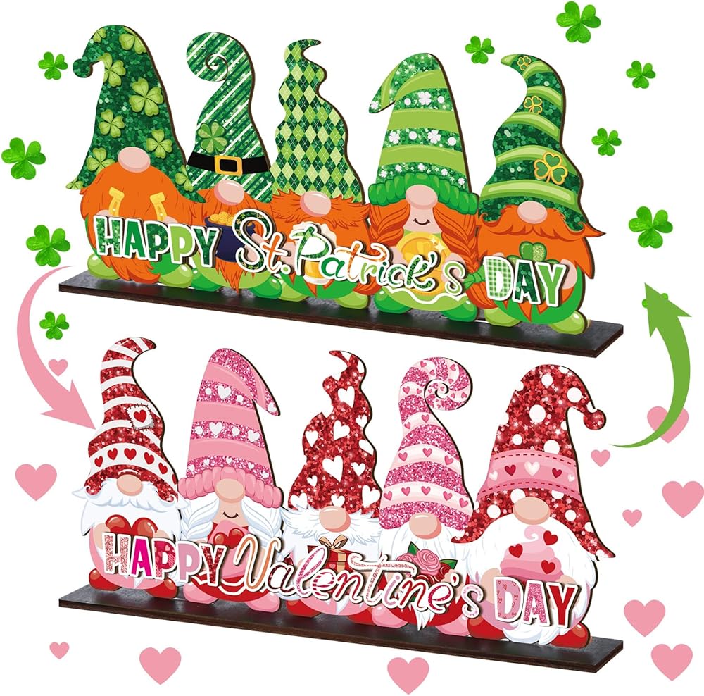1 x Valentine's Day and St. Patrick's Day reversible gnome wood sign