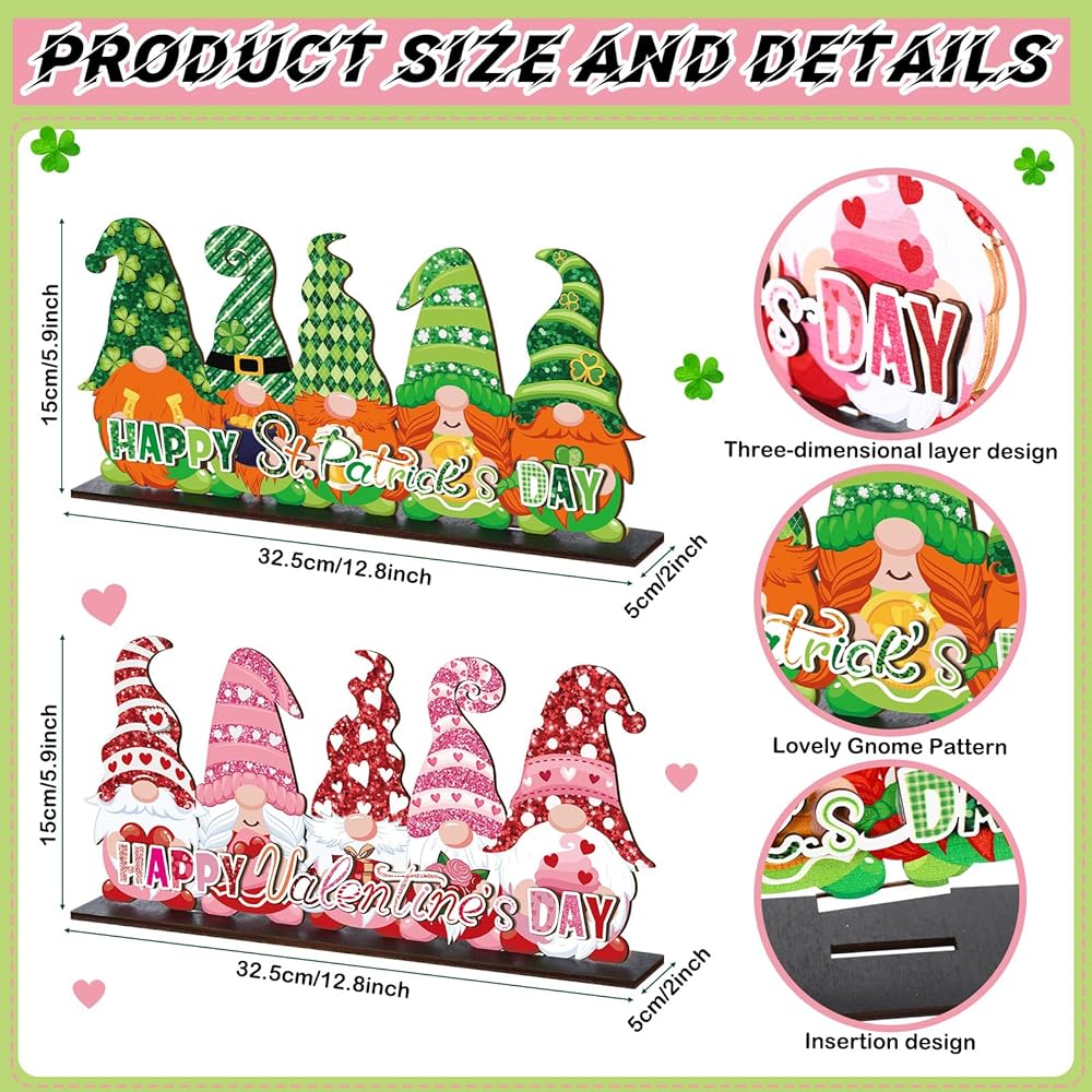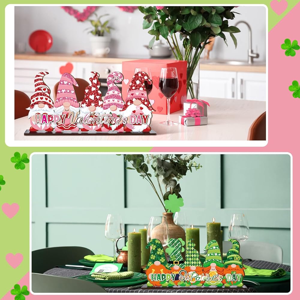Creatively designed gnomes are sure to catch the eyes of your guests and loved ones. With each gnome portraying a special character, this Valentine's Day St. Patrick's Day farmhouse table centerpiece is an ideal way to add charm to your festive decoration.