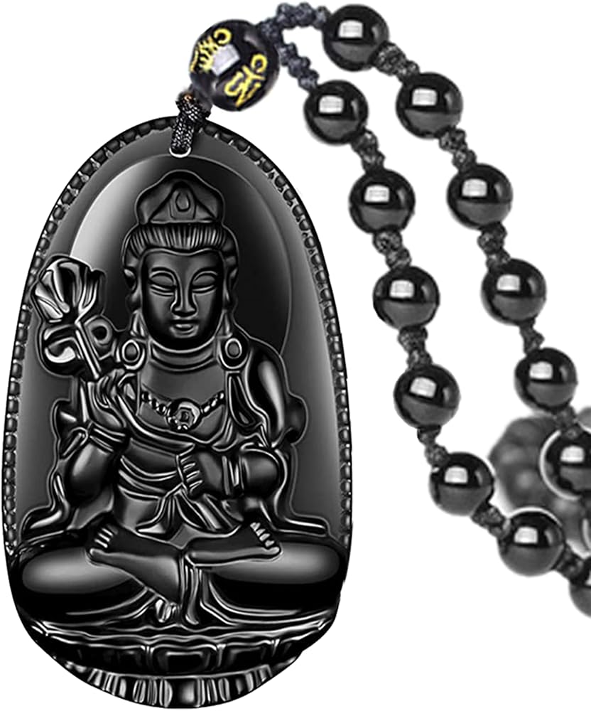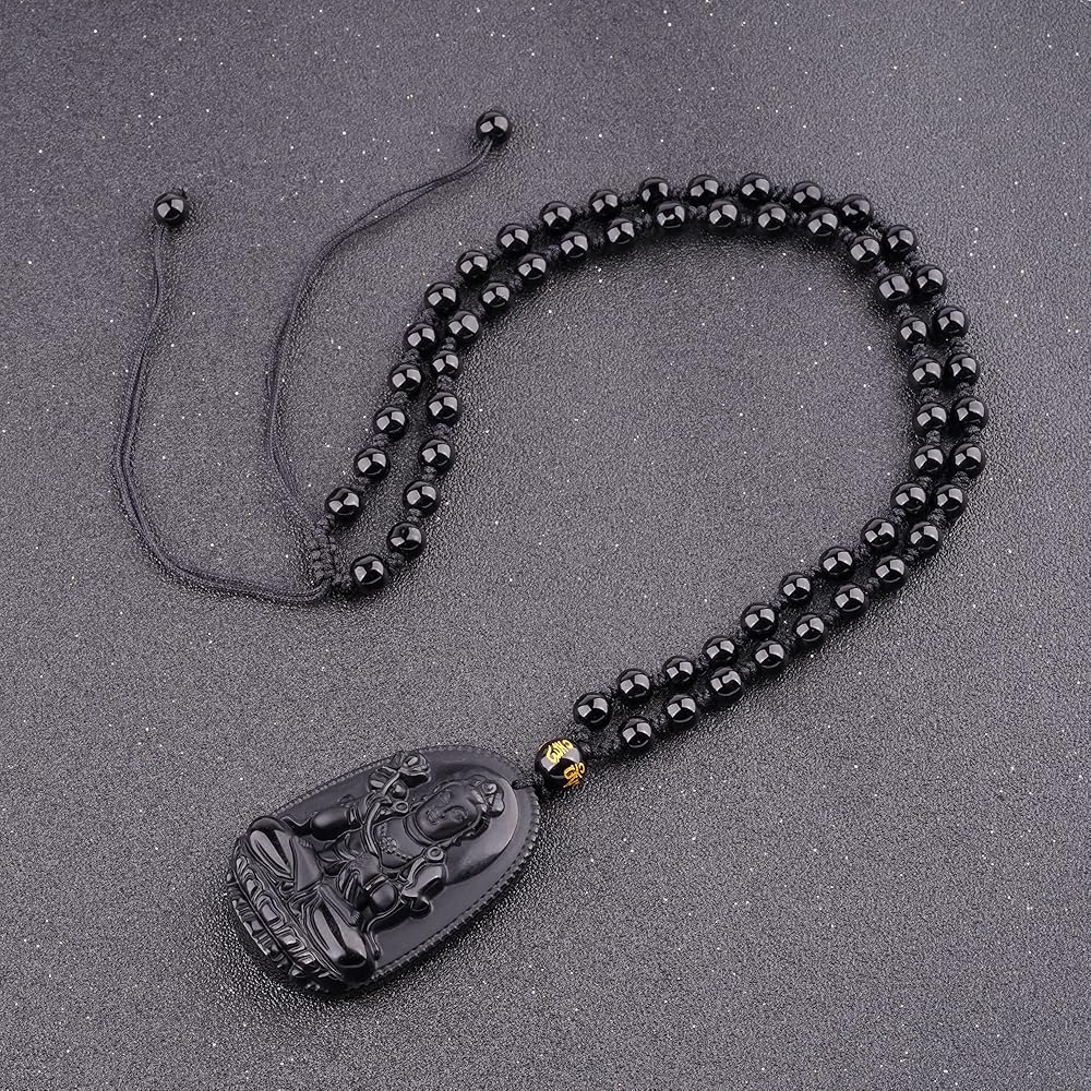 [ SPECIFICATION ] Buddha Pendant Size: 2.05*1.3 inches (52mm*33mm), made of natural obsidian carved buddha pendant with black bead chain. Sturdy adjustable cord is crafted by hand from a strong bead chain string, adjustbale from 19.7" to 31.5" (50cm to 80cm).