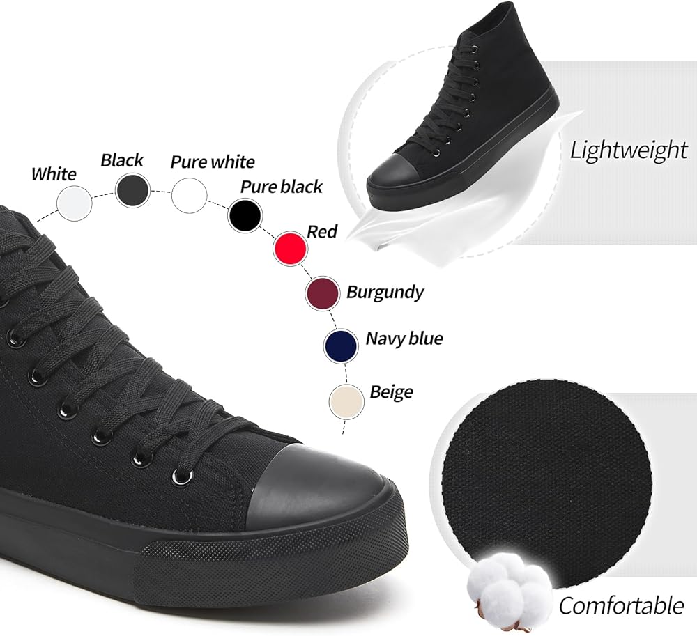 Soft material: Mens high top shoes are made of soft canvas material, and the sole is made of non-slip rubber.As a pair of high top canvas shoes,comfort is essential.