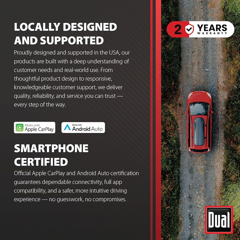 Dual Electronics DCPA81W 8-inch Certified Apple CarPlay Android Auto Wired or Wireless | Single DIN & Double DIN Touchscreen Car Stereo Radio | Bluetooth | Front & Rear Camera | USB Playback & Charge